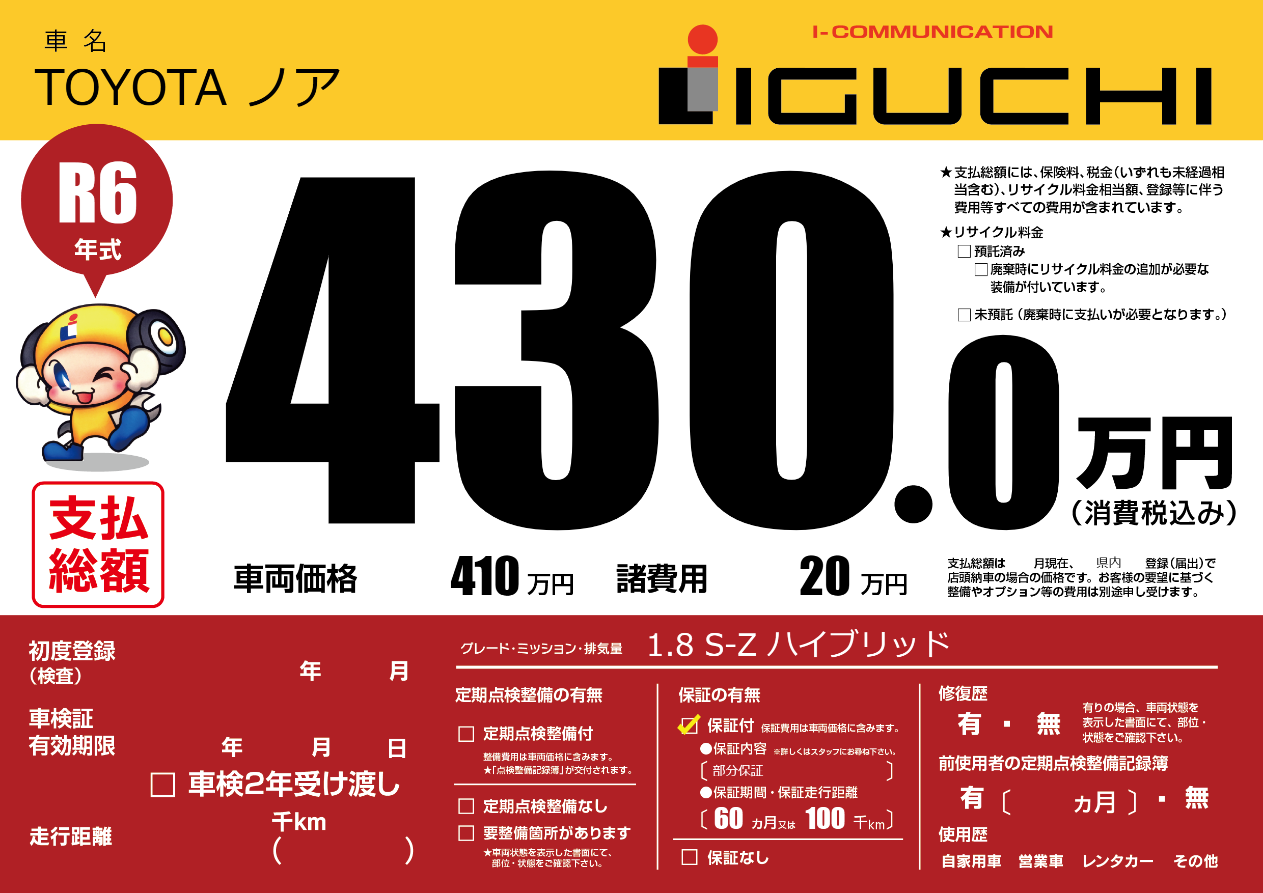 保証付き 保証内容(部分保証) 60ヶ月または(100)千kmまで |