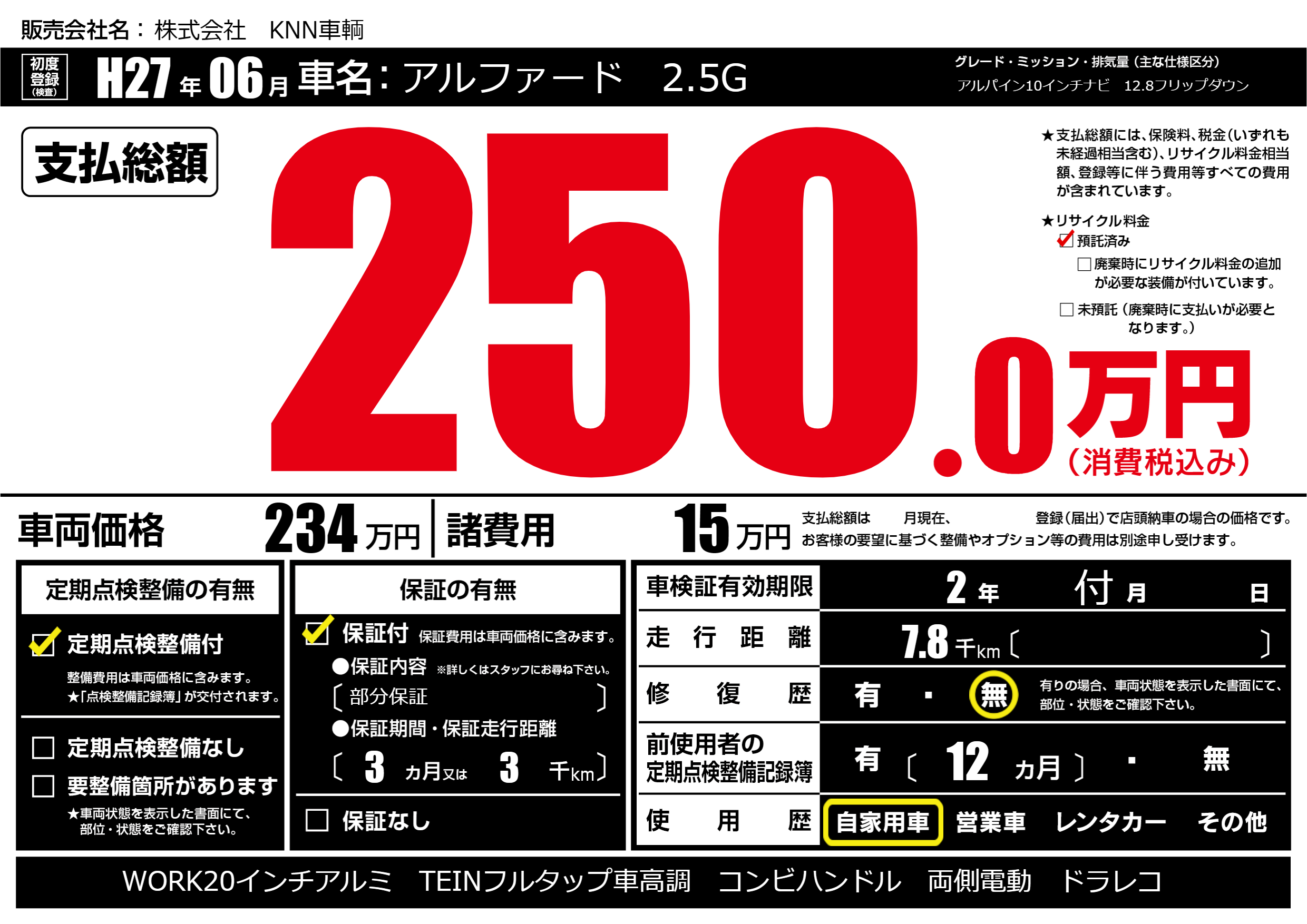 なし | 車検制限 | 2年付月---月 |