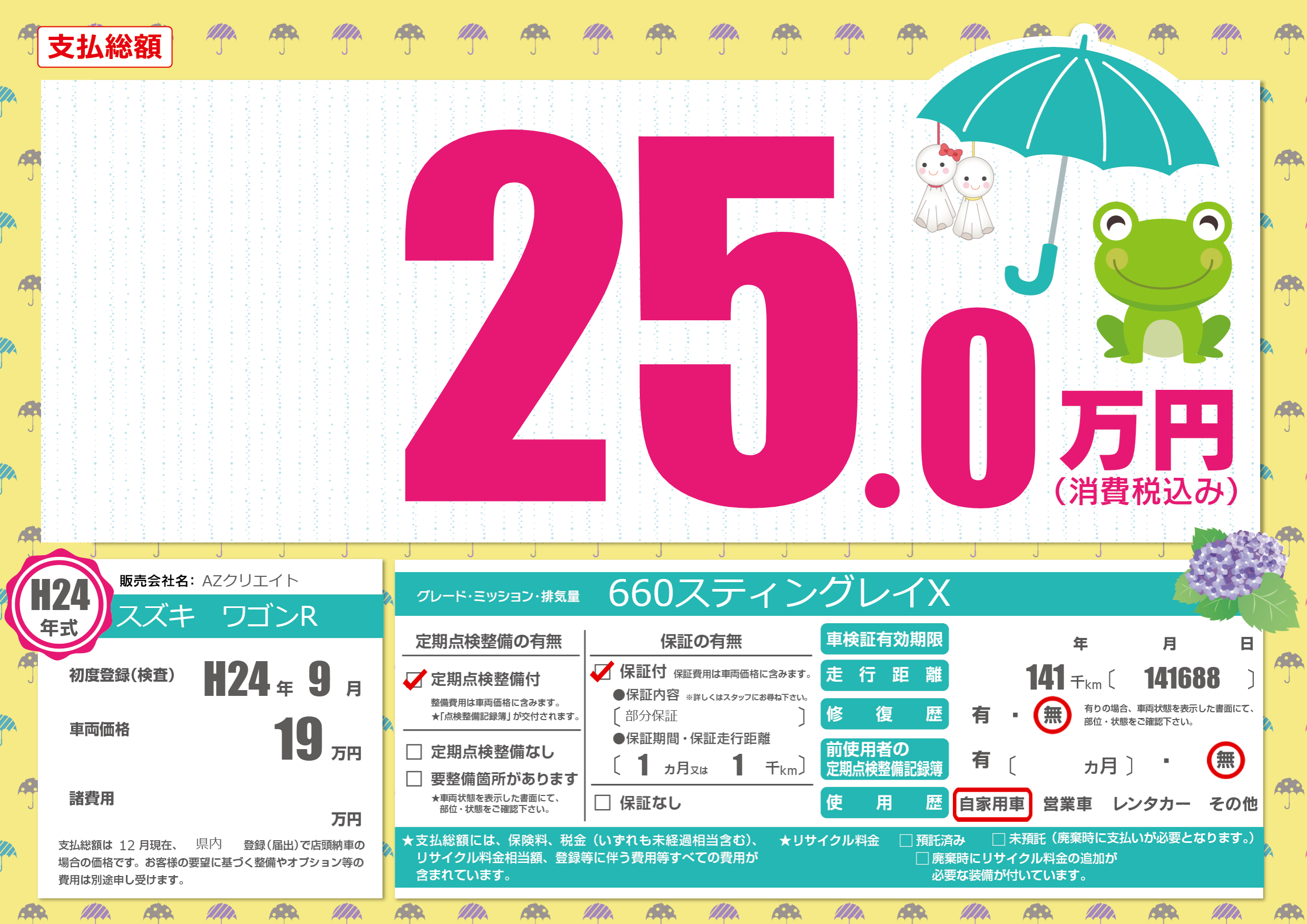 | 走行キロ | 14.1万km | 初年度登録 | H24年9月 |