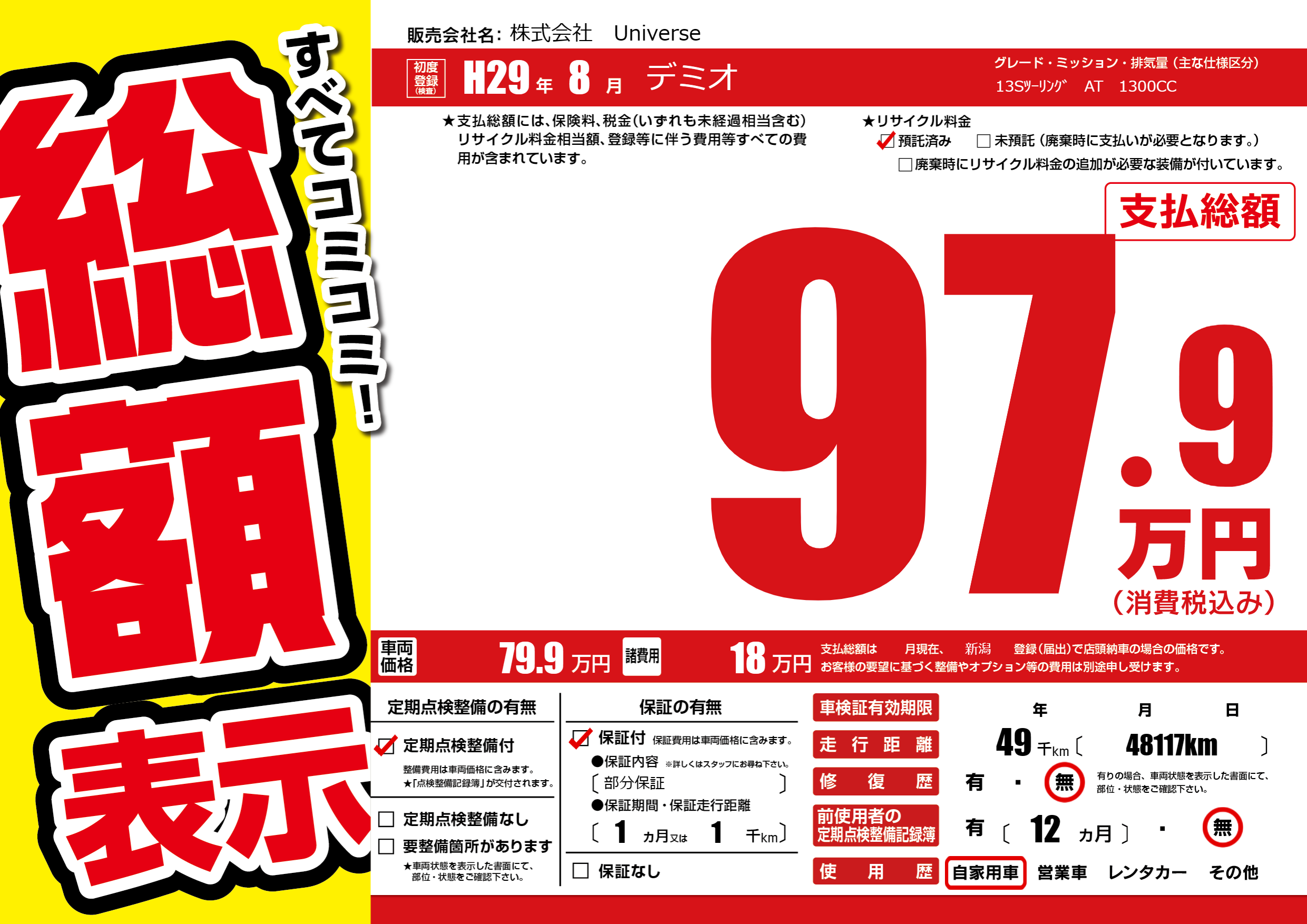 | 車名 | デミオ | グレード ミッション 排気量 |