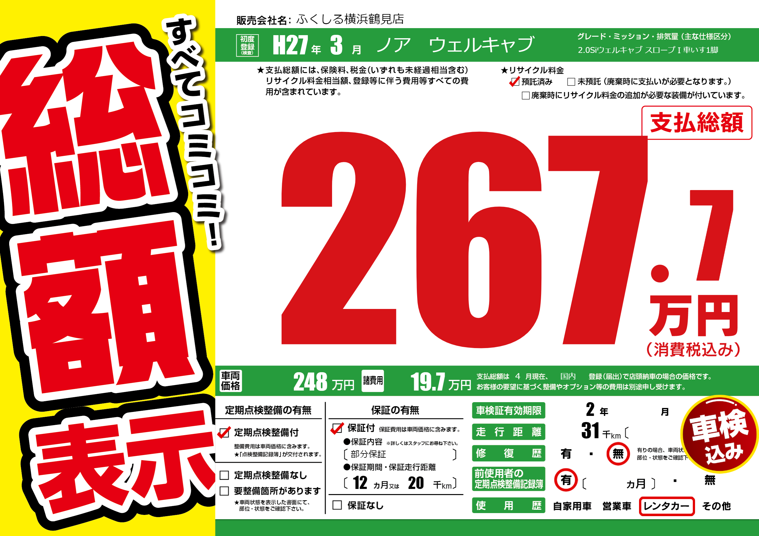 | 車名 | ノア ウェルキャブ | グレード ミッション 排気量 |