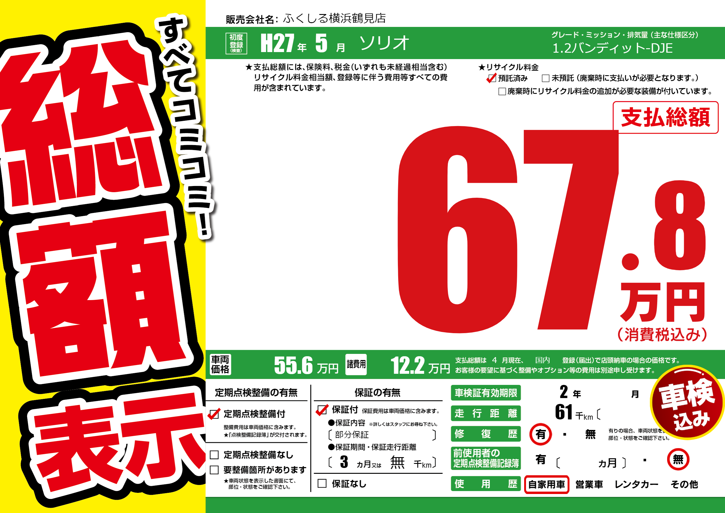 | 車名 | ソリオ | グレード ミッション 排気量 |