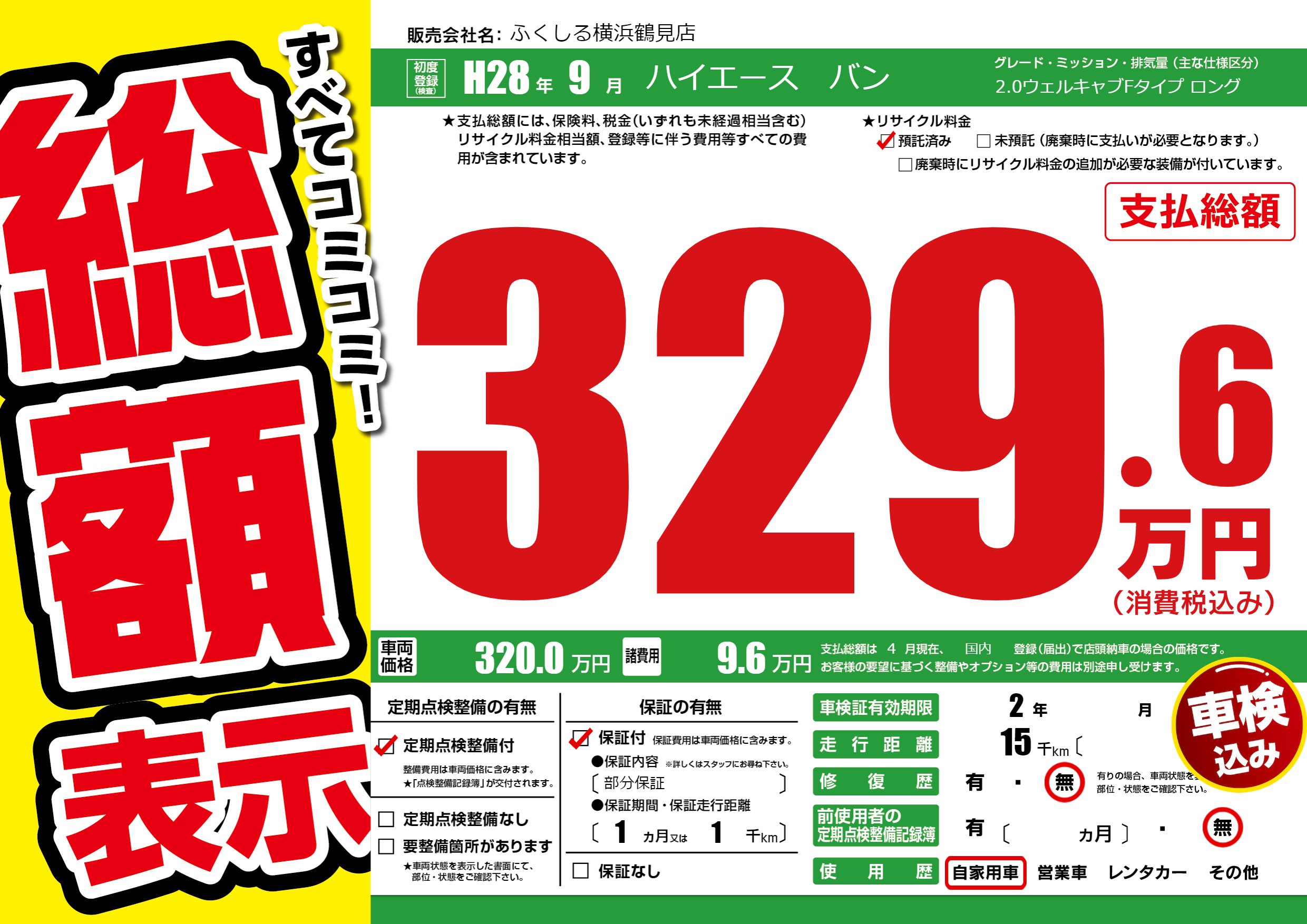 | 車名 | ハイエース バン | グレード ミッション 排気量 |