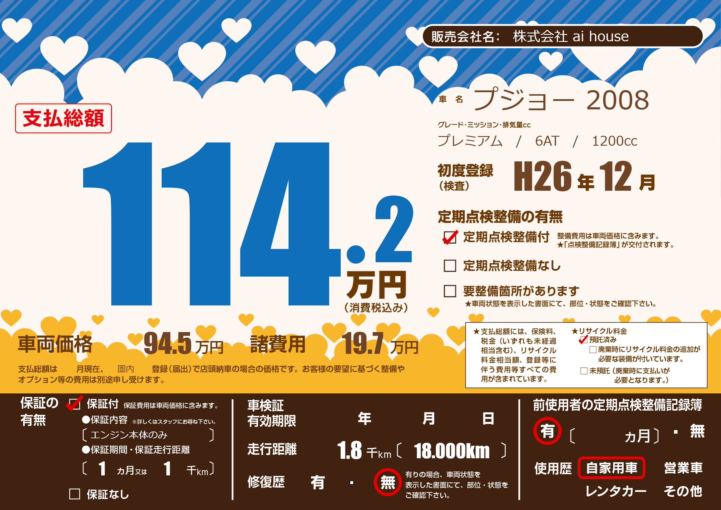 | 車名 | プジョー 2008 | グレード ミッション 排気量 |