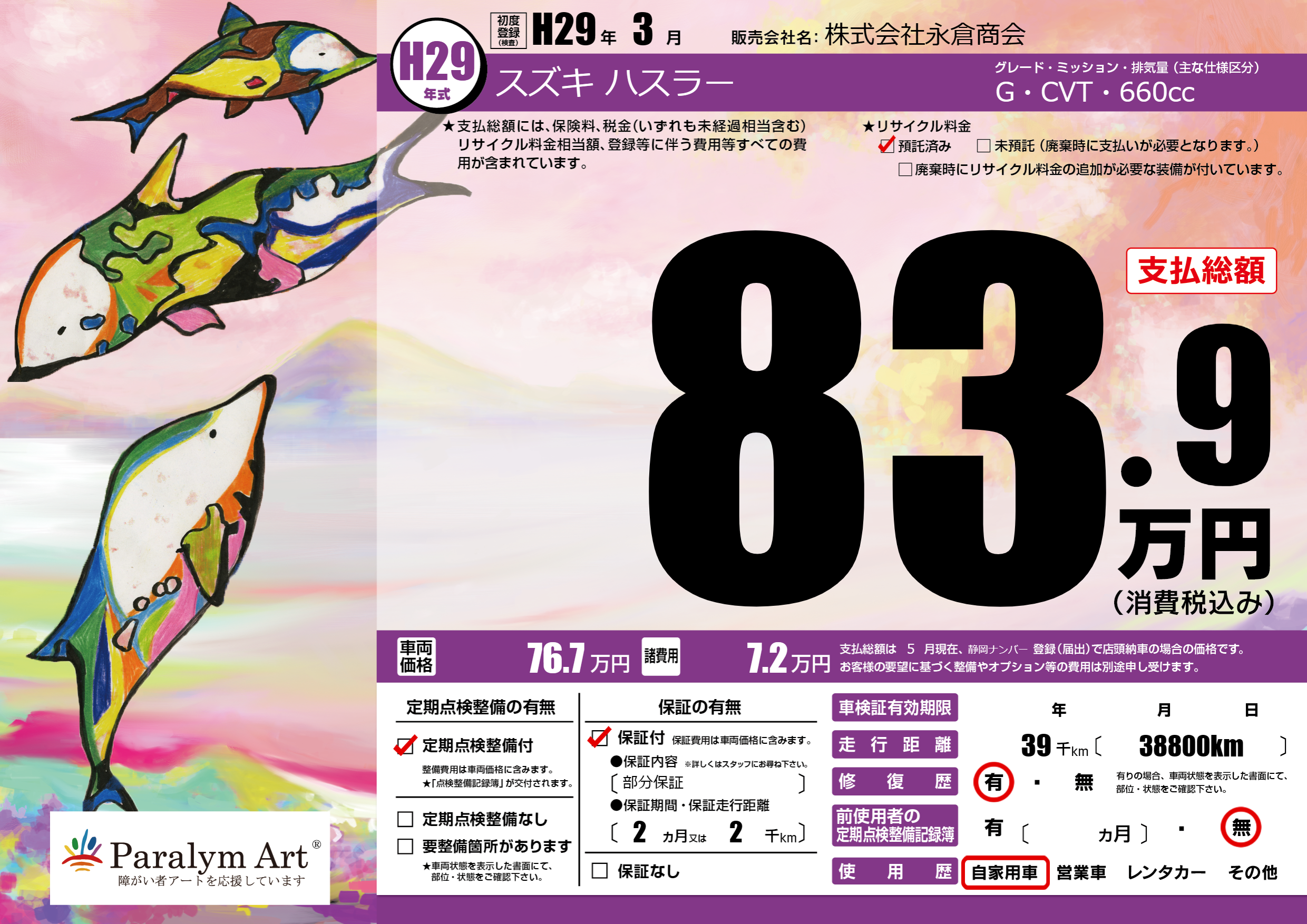 | 車名 | スズキ ハスラー | グレード ミッション 排気量 |