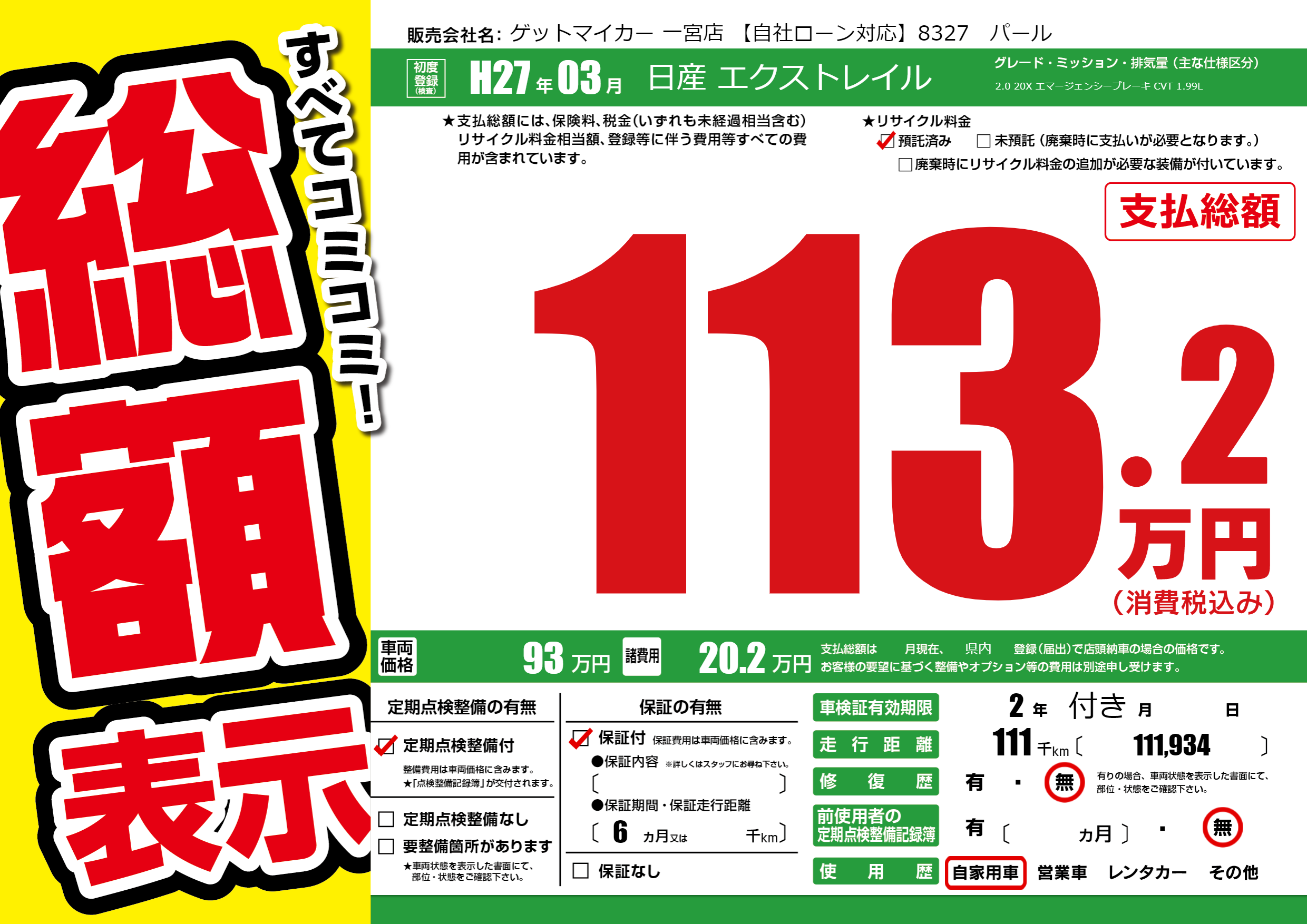 | 走行キロ | 11.1万km | ||