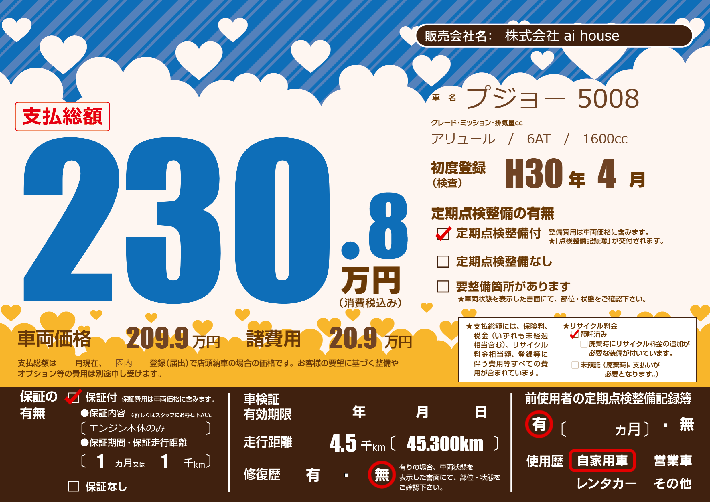 | 走行キロ | 0.4万km | 初年度登録 | H30年4月 |