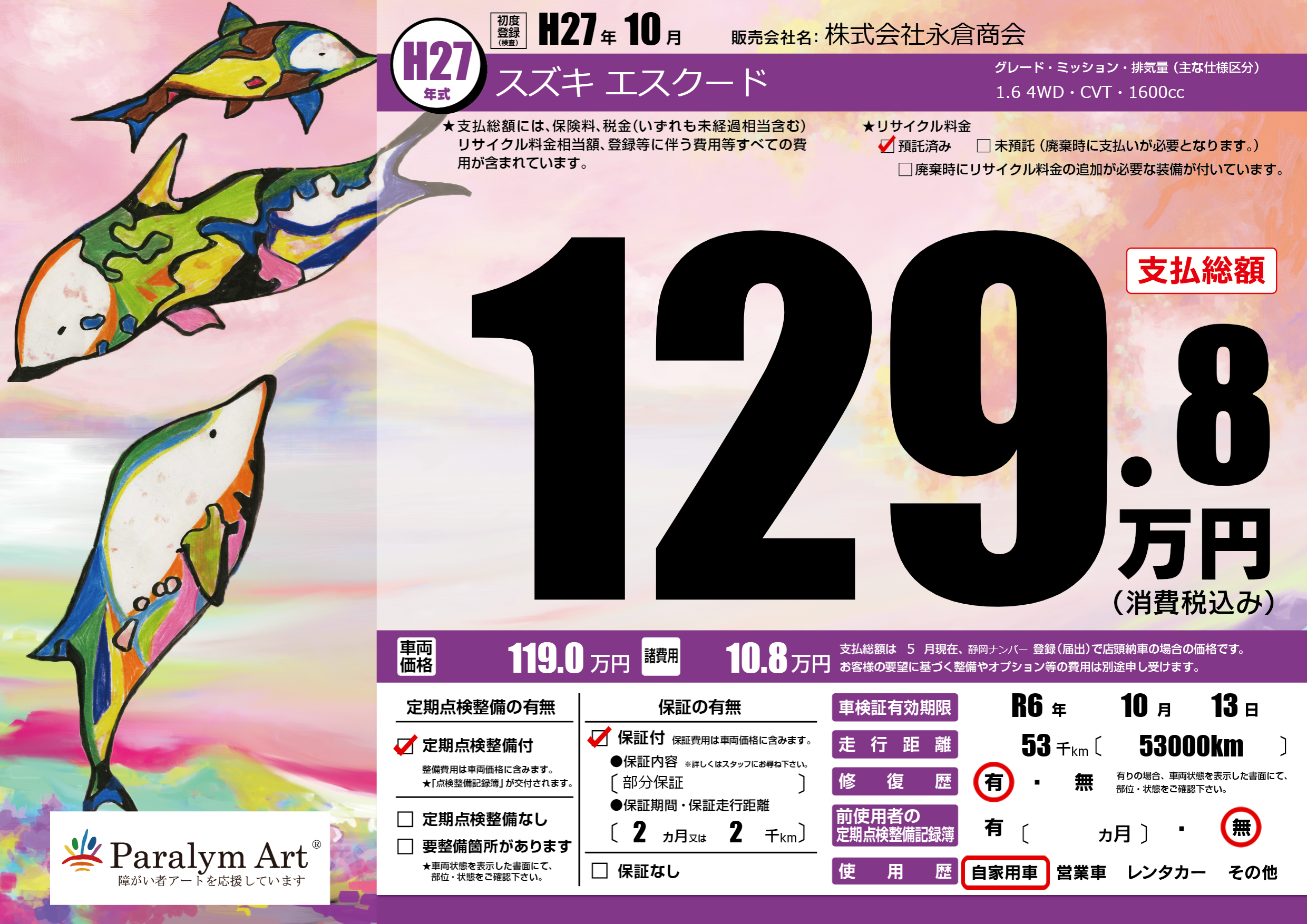 | 車名 | スズキ エスクード | グレード ミッション 排気量 |