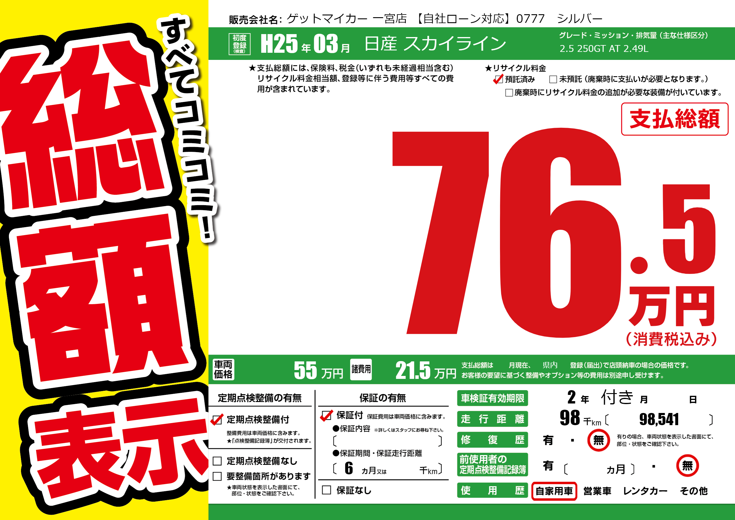 なし | 車検制限 | 2年付き月---月 |