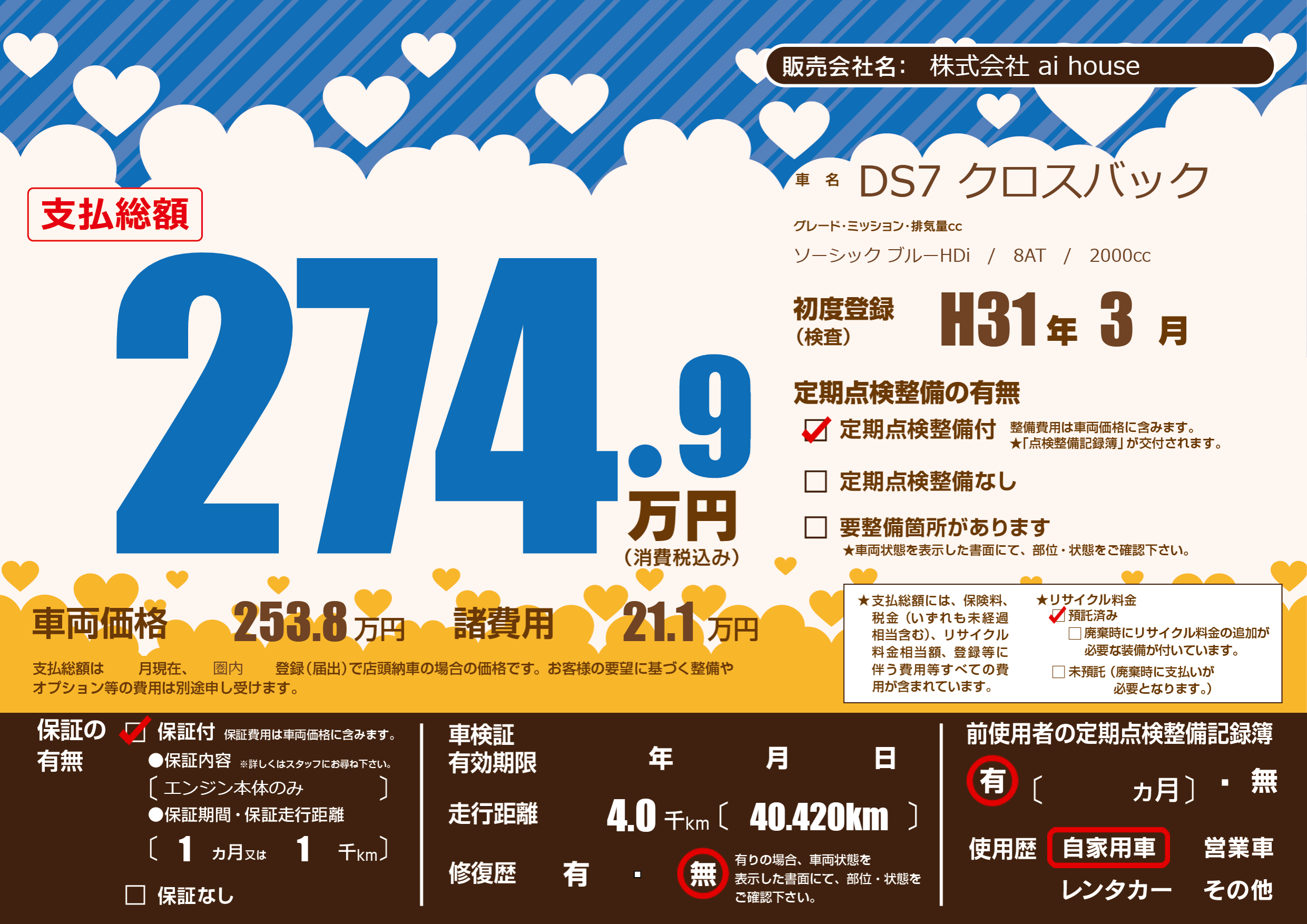 | 定期点検整備 | 定期点検整備あり | ||