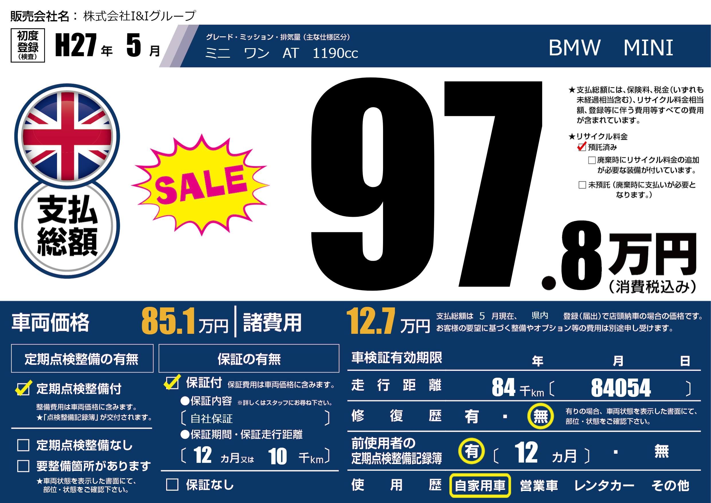 保証付き 保証内容(自社保証) 12ヶ月または(10)千kmまで |
