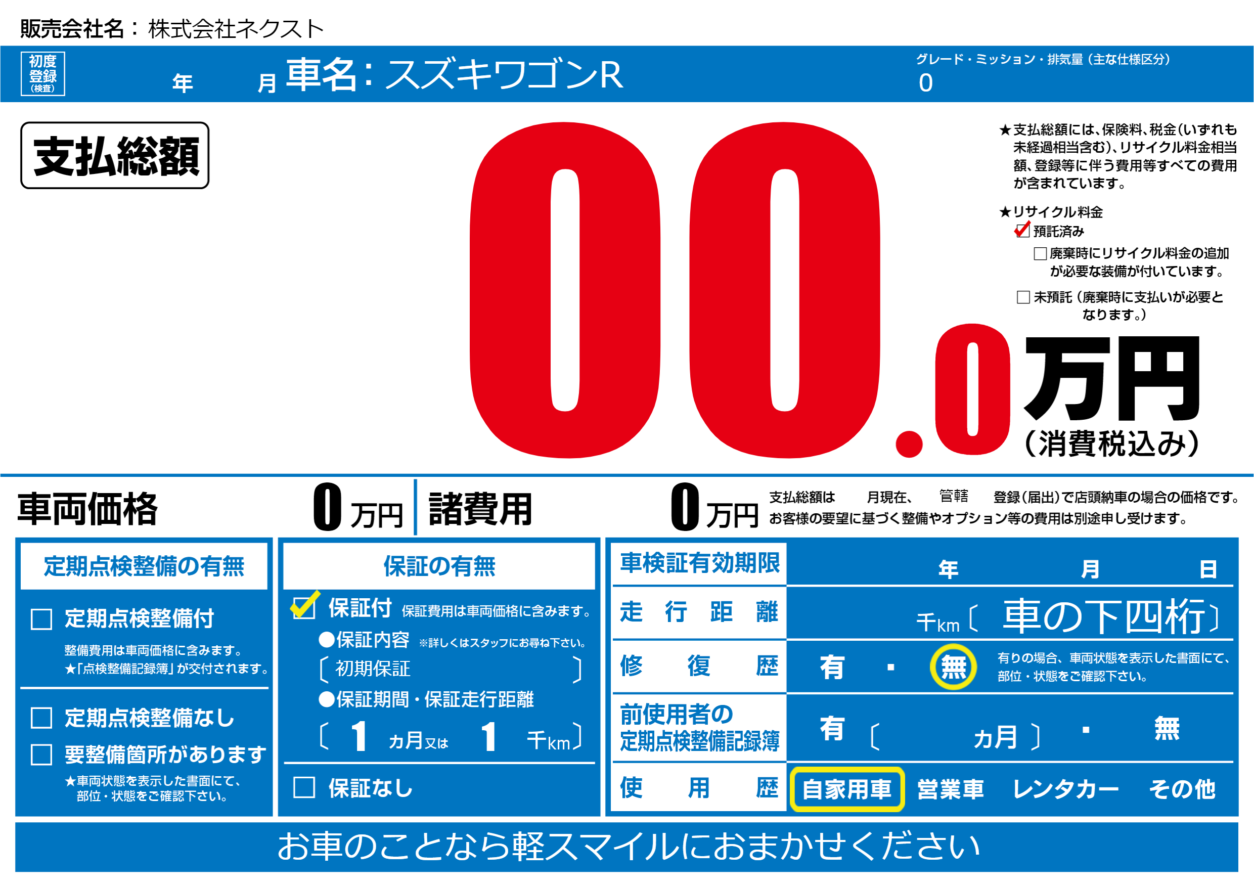 | 車名 | スズキワゴンR | グレード ミッション 排気量 |