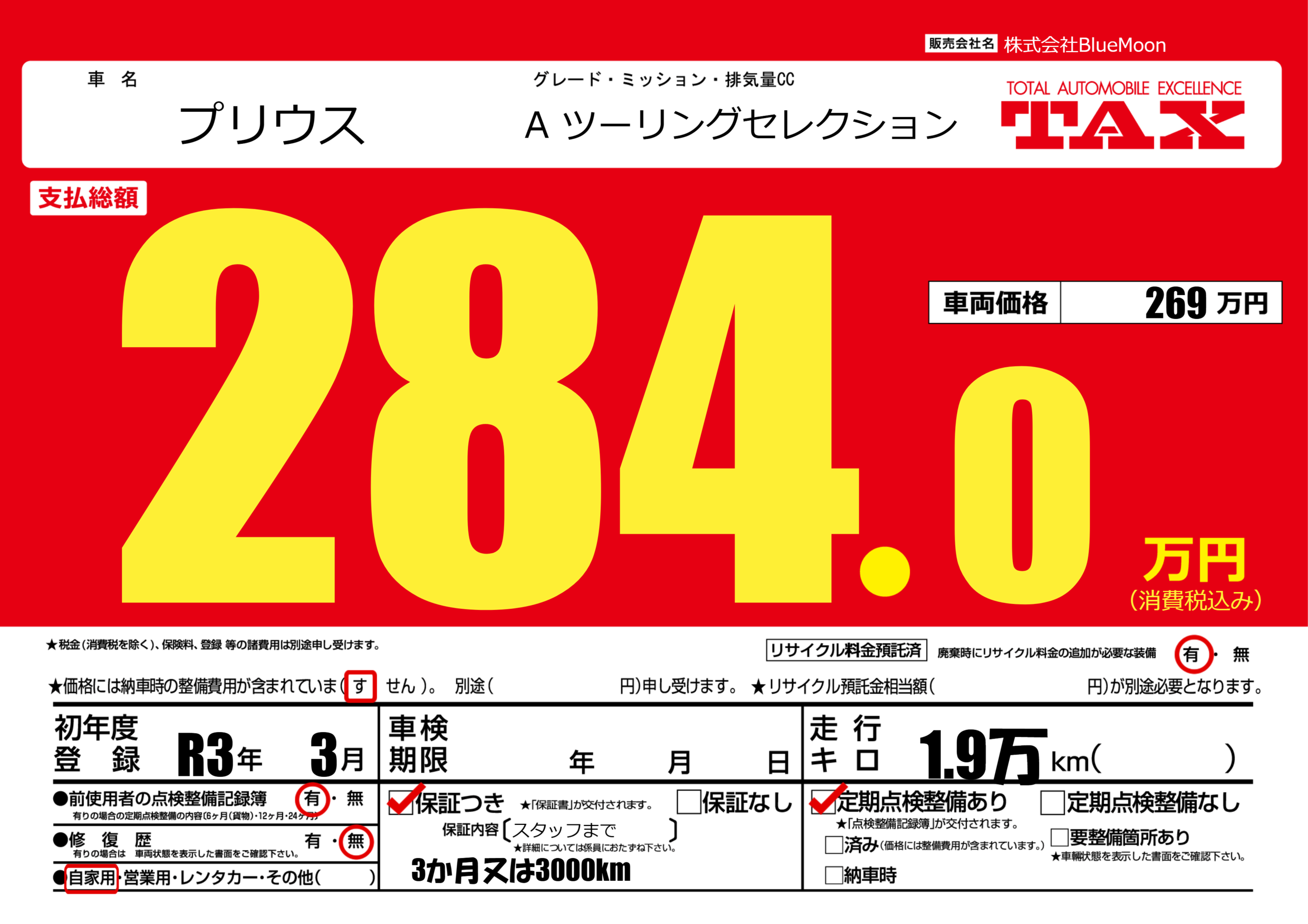 | 車名 | プリウス | グレード ミッション 排気量 |