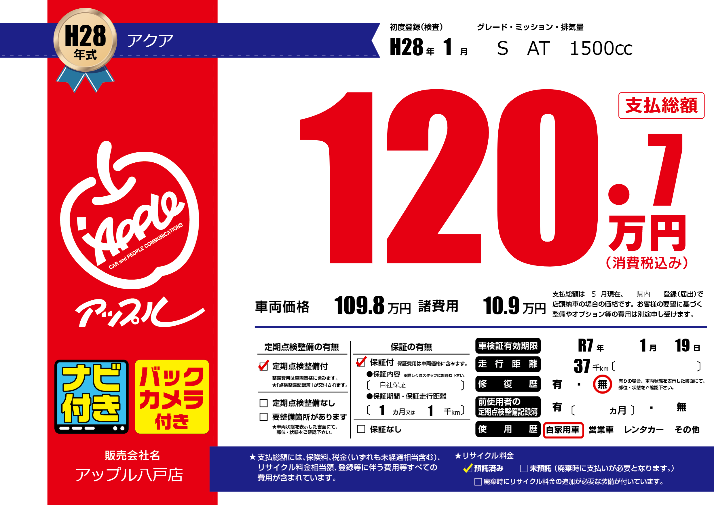 | 走行キロ | 3.7万km | 初年度登録 | H28年1月 |