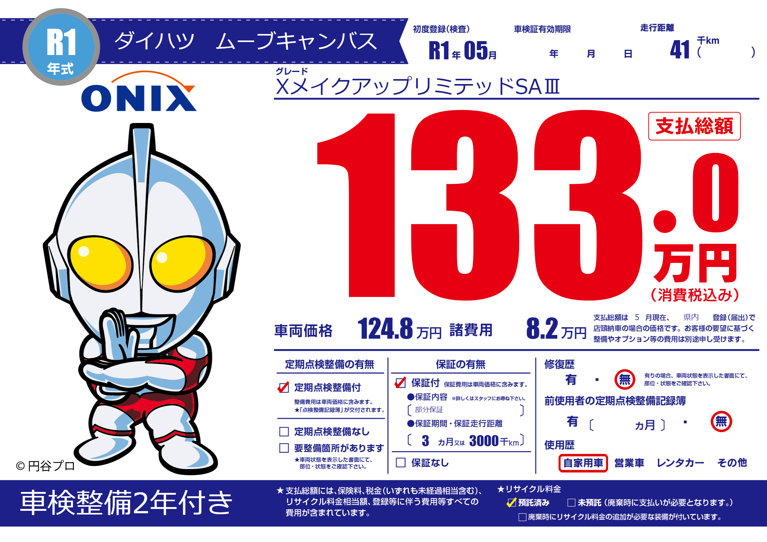 | 走行キロ | 4.1万km | 初年度登録 | R1年05月 |