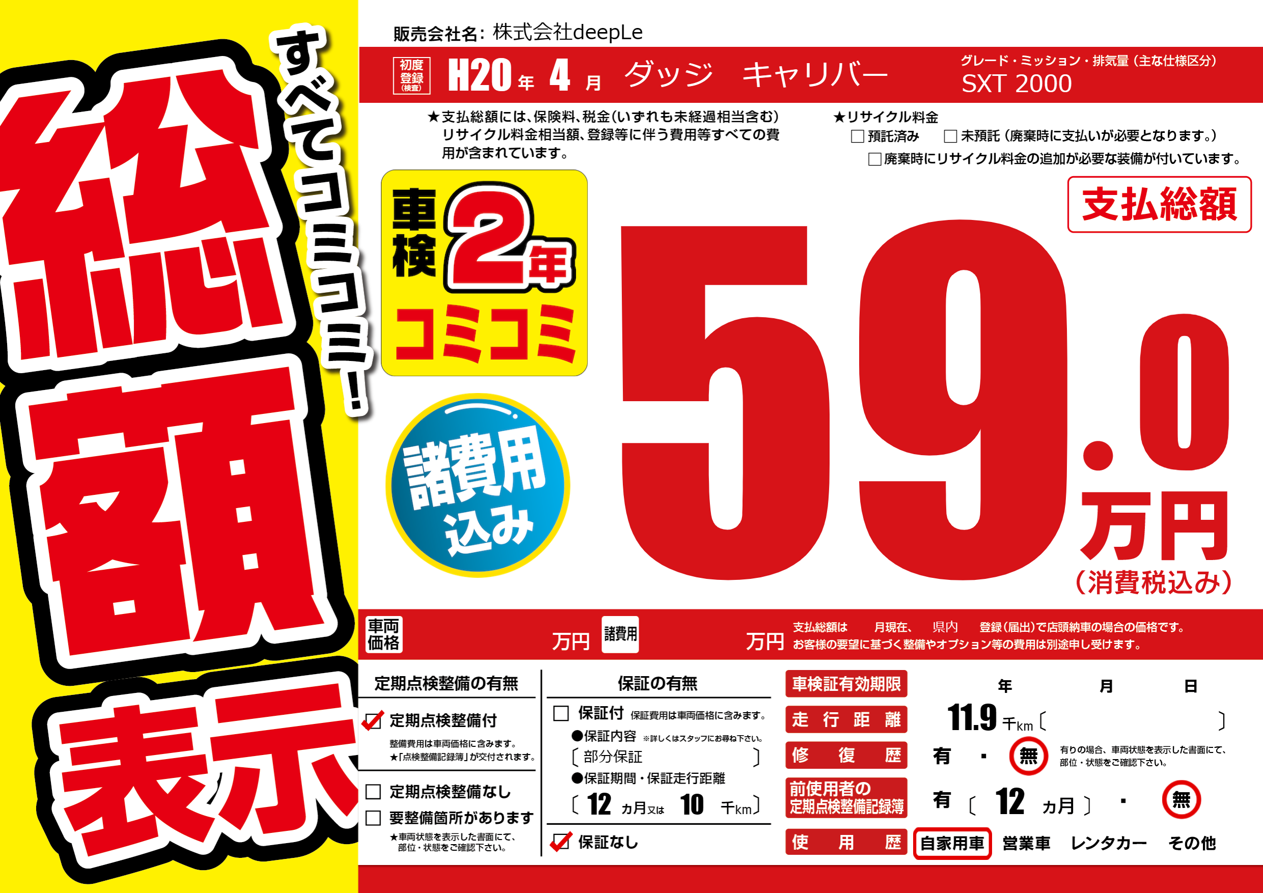 保証なし 保証内容(部分保証) 12ヶ月または(10)千kmまで |