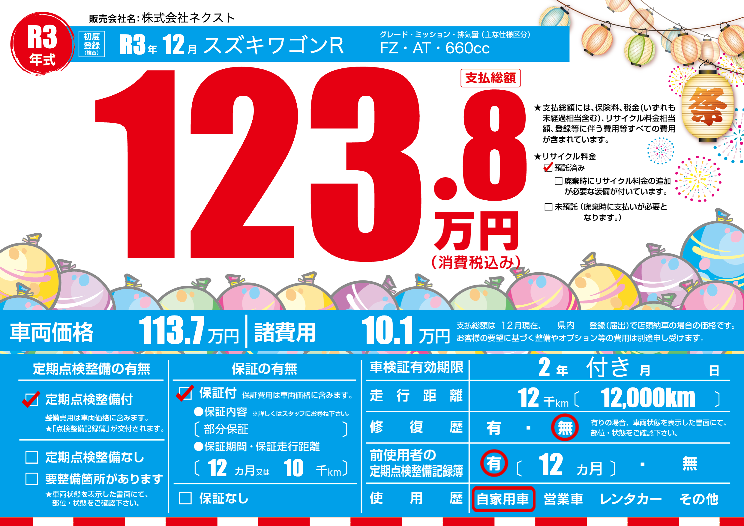 保証付き 保証内容(部分保証) 12ヶ月または(10)千kmまで |
