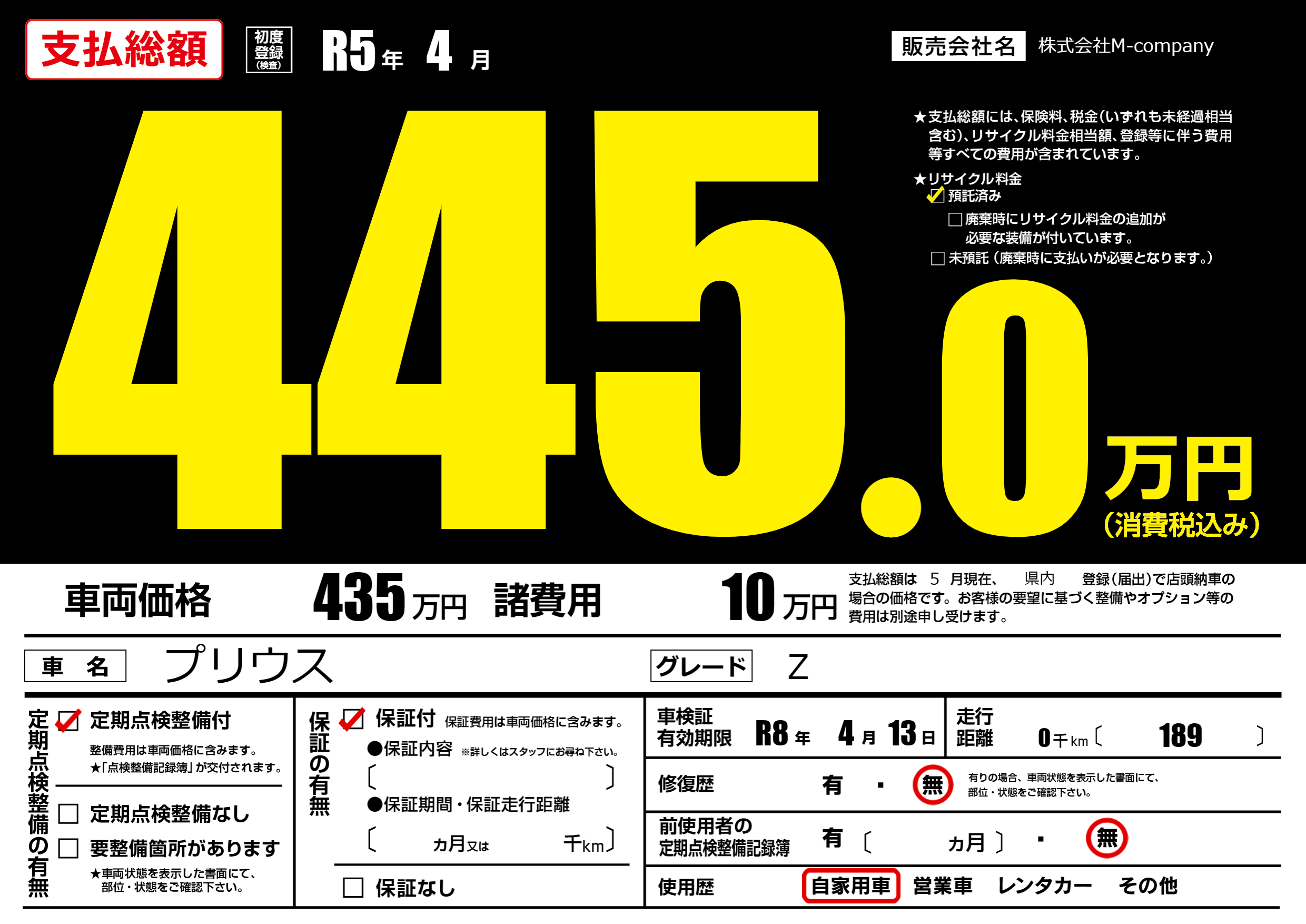 | 走行キロ | - | 初年度登録 | R5年4月 |