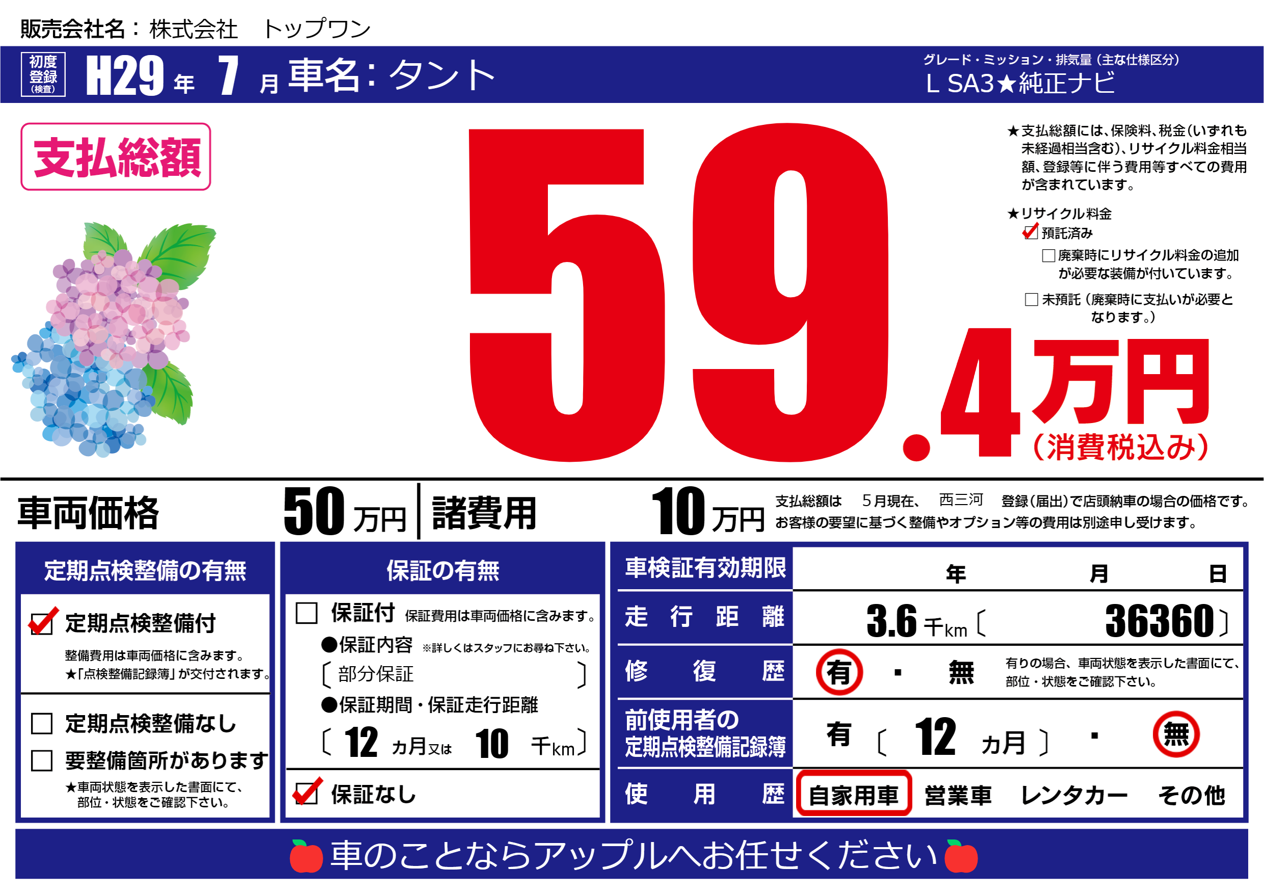 定期点検整備 | 定期点検整備あり |