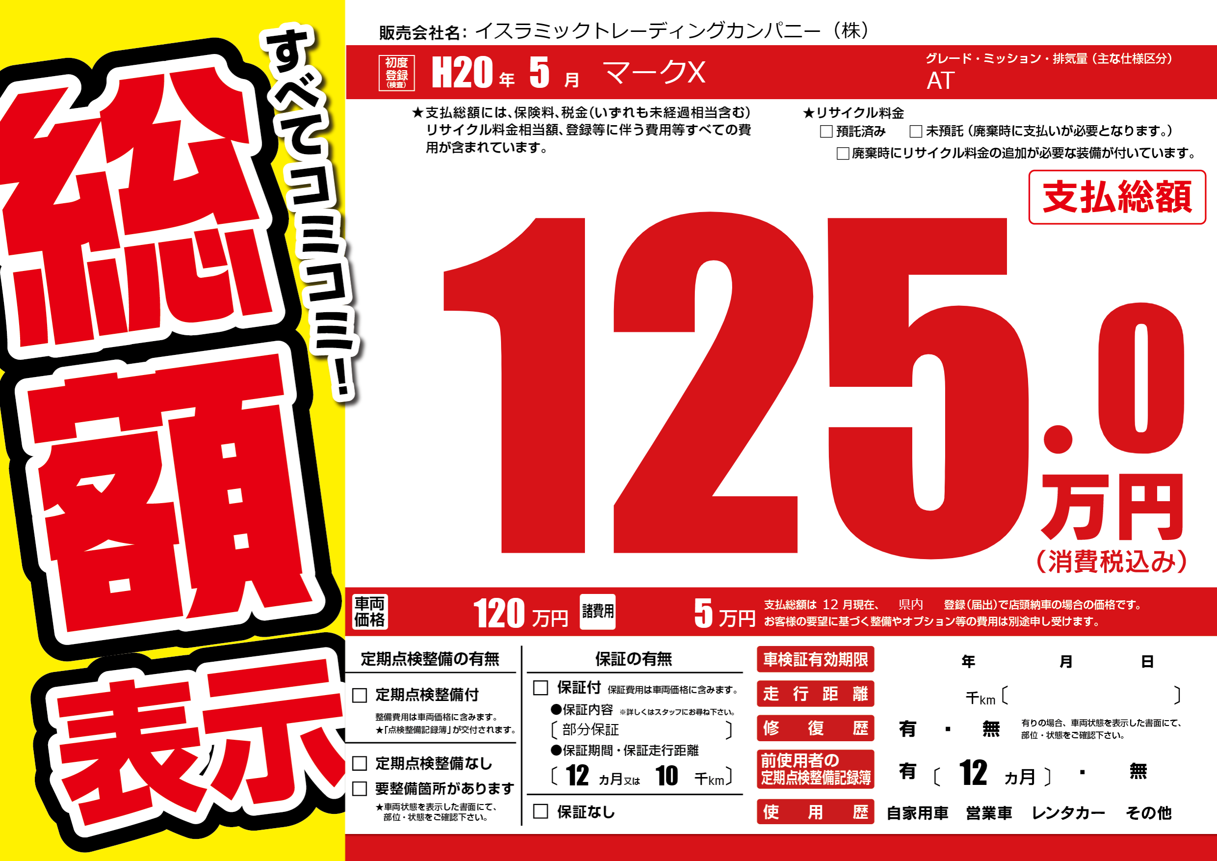 | 走行キロ | - | 初年度登録 | H20年5月 |