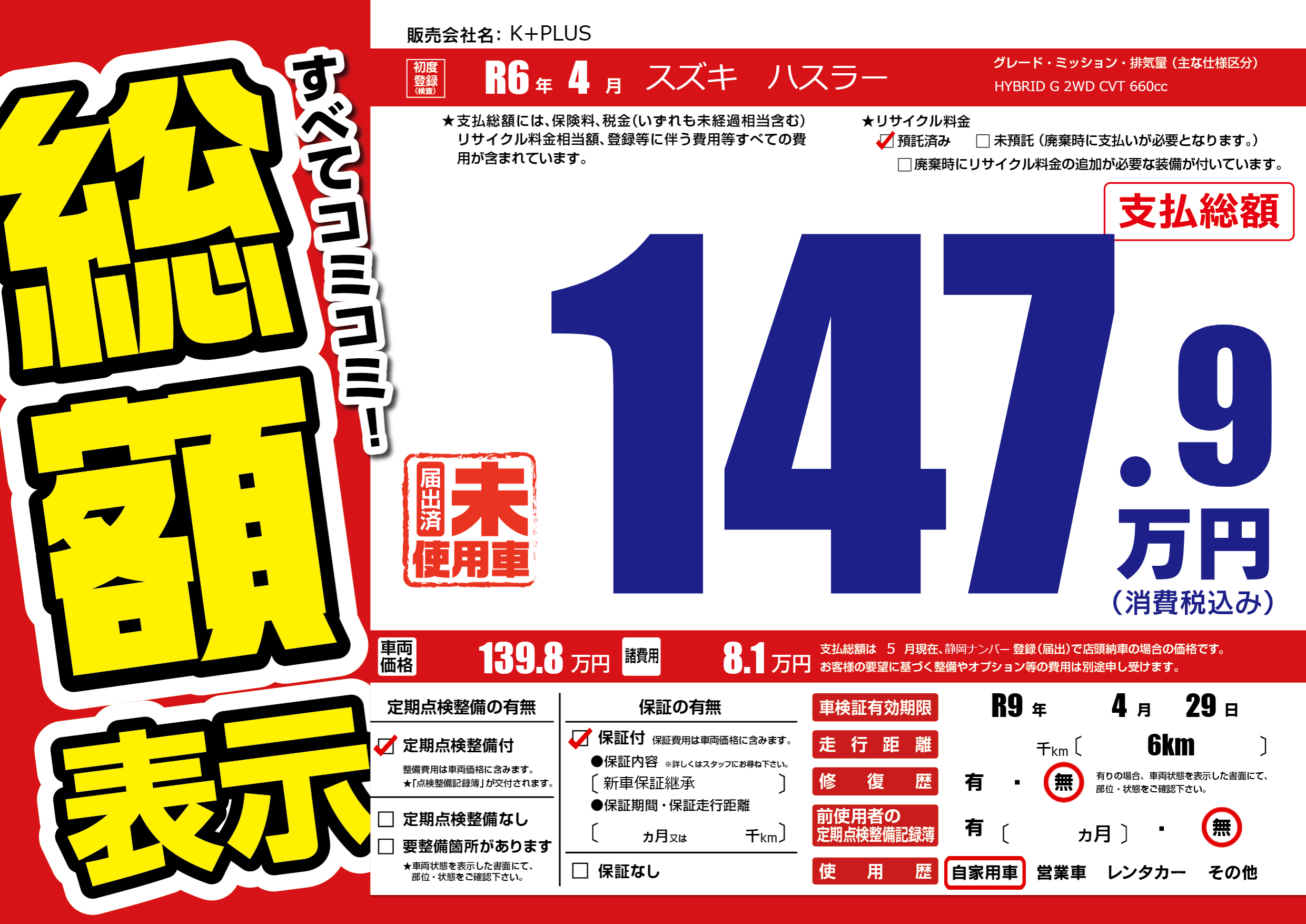 なし | 車検制限 | R9年4月29月 |