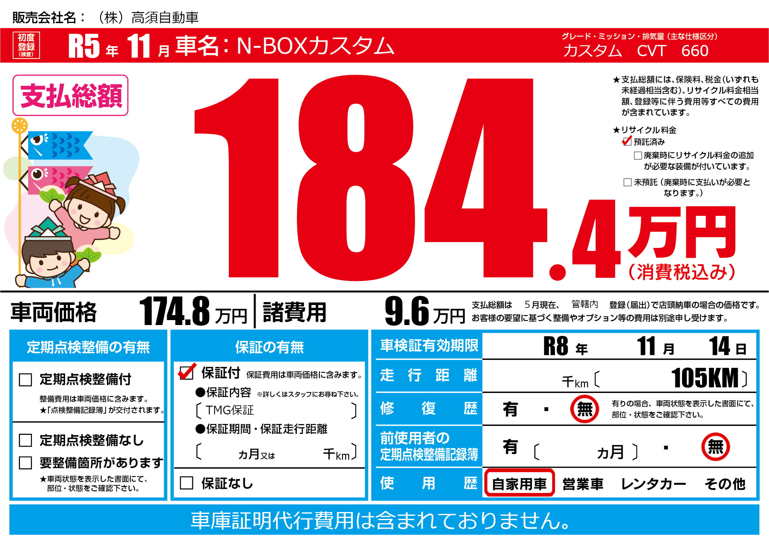 保証付き 保証内容(TMG保証) ---ヶ月または()千kmまで |