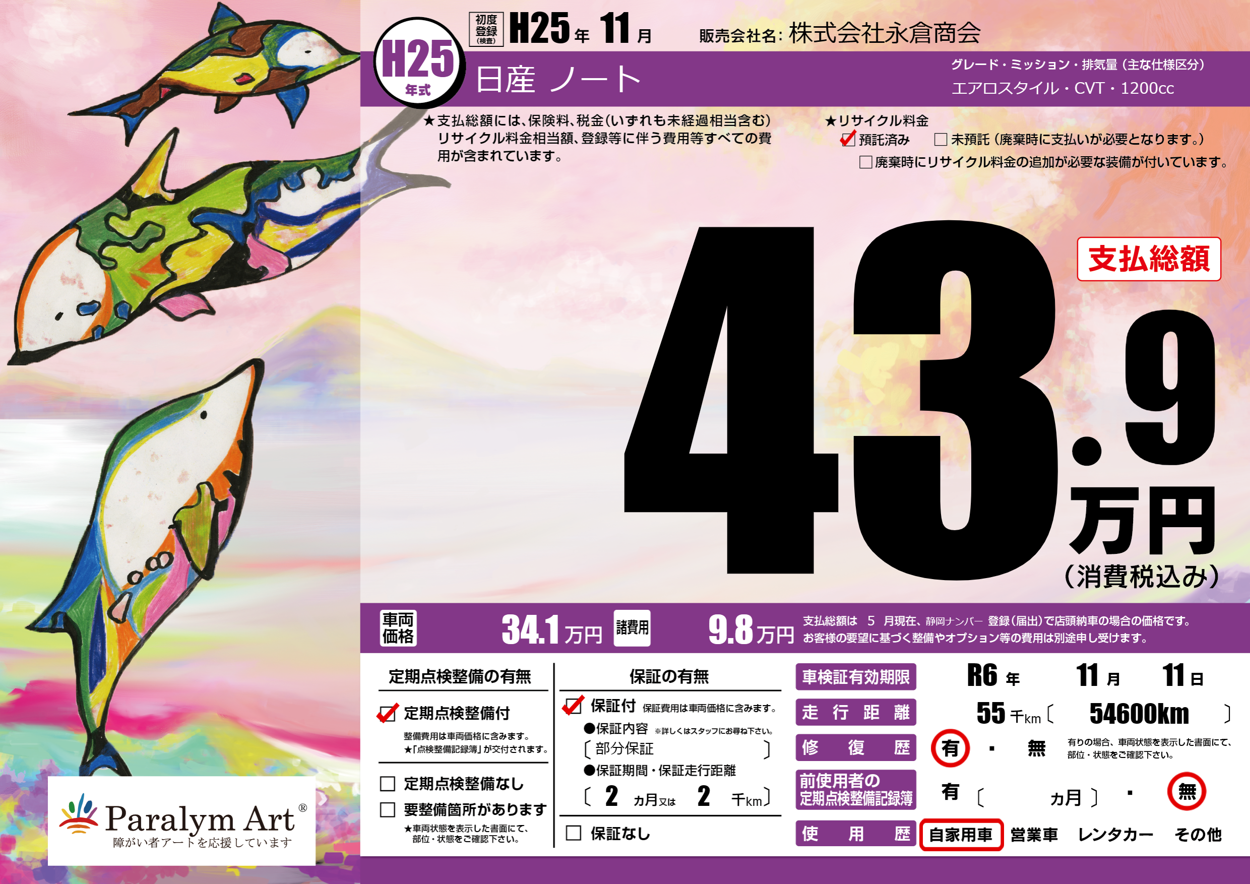 | 車名 | 日産 ノート | グレード ミッション 排気量 |