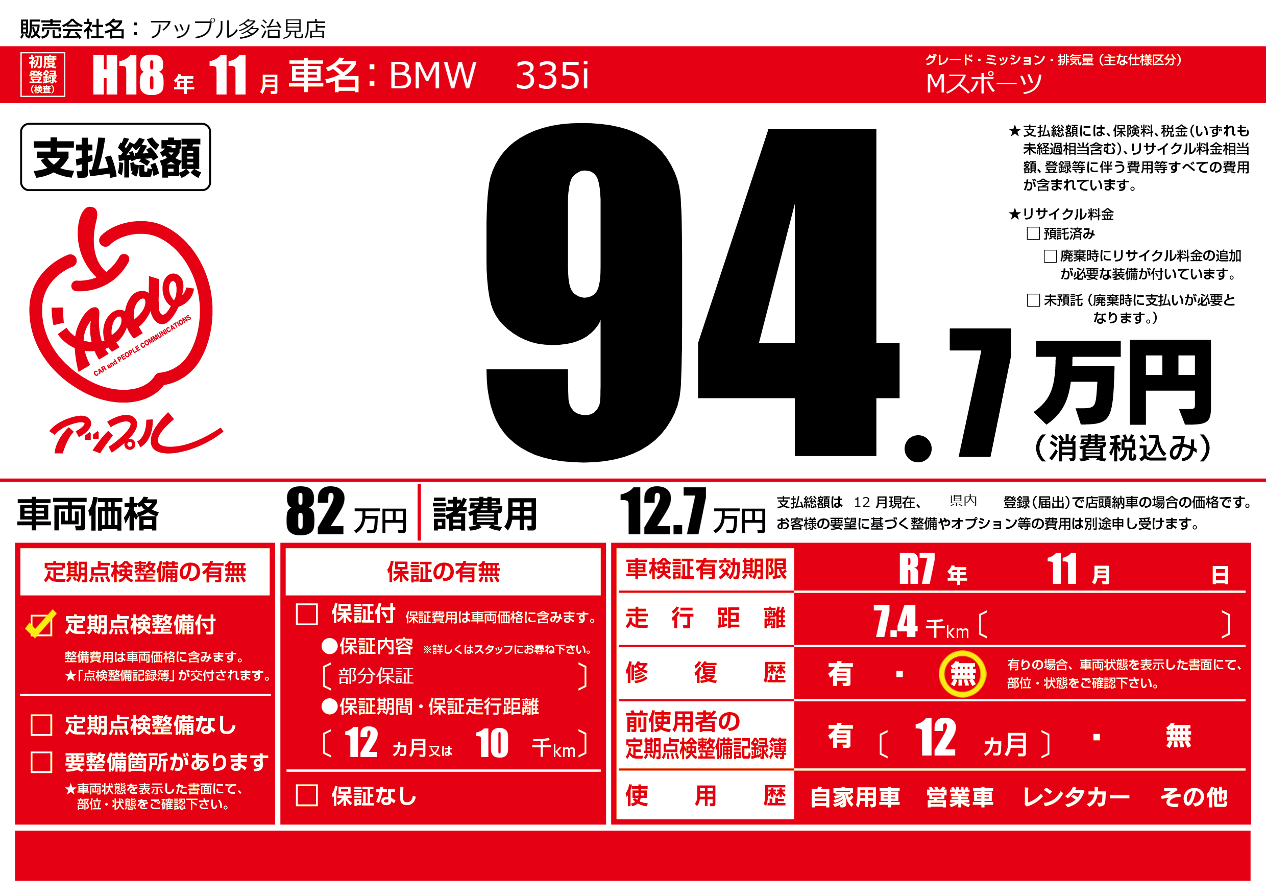| 定期点検整備 | 定期点検整備あり | ||