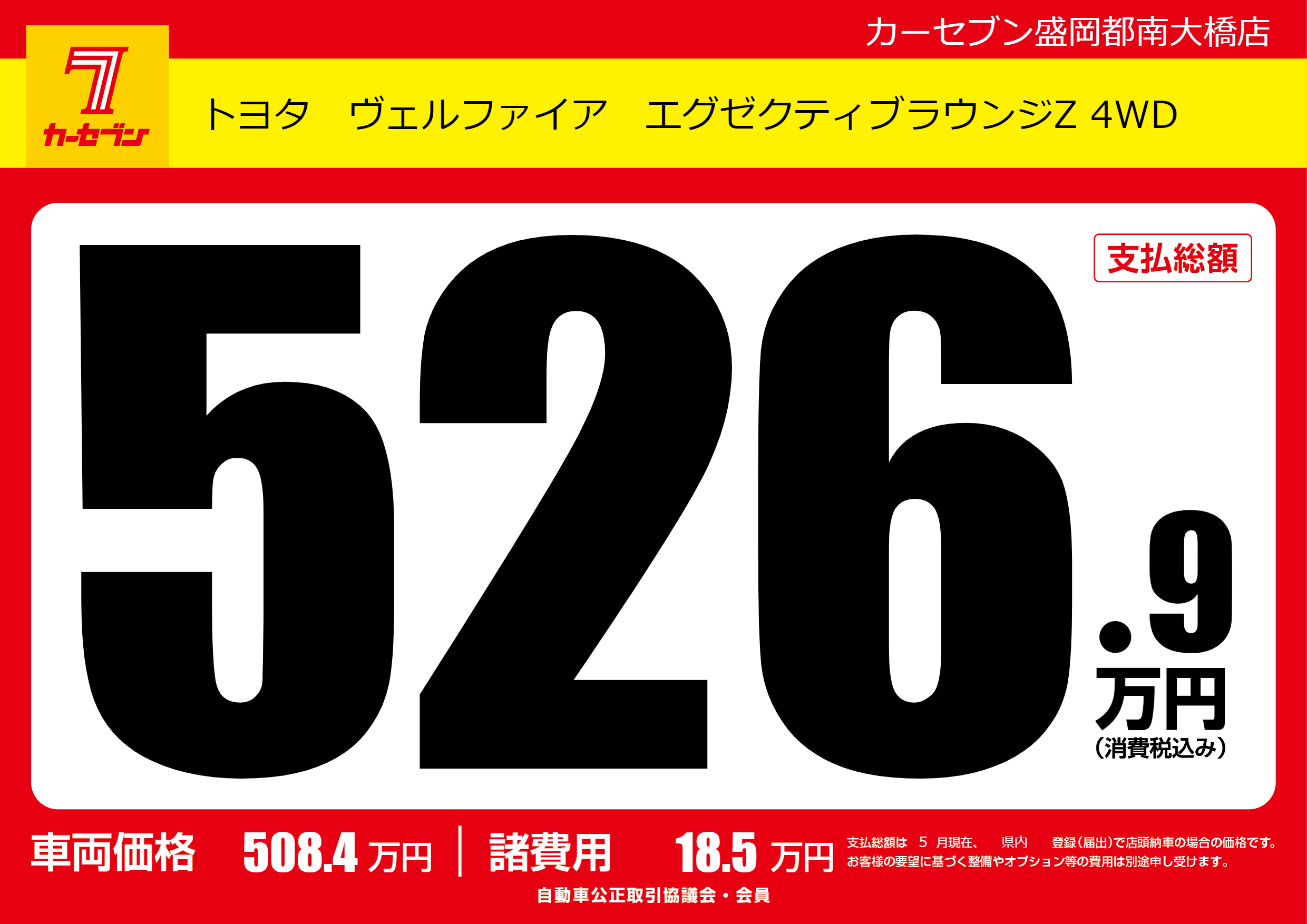 | 車名 | トヨタ ヴェルファイア エグゼクティブラウンジZ 4WD | グレード ミッション 排気量 |