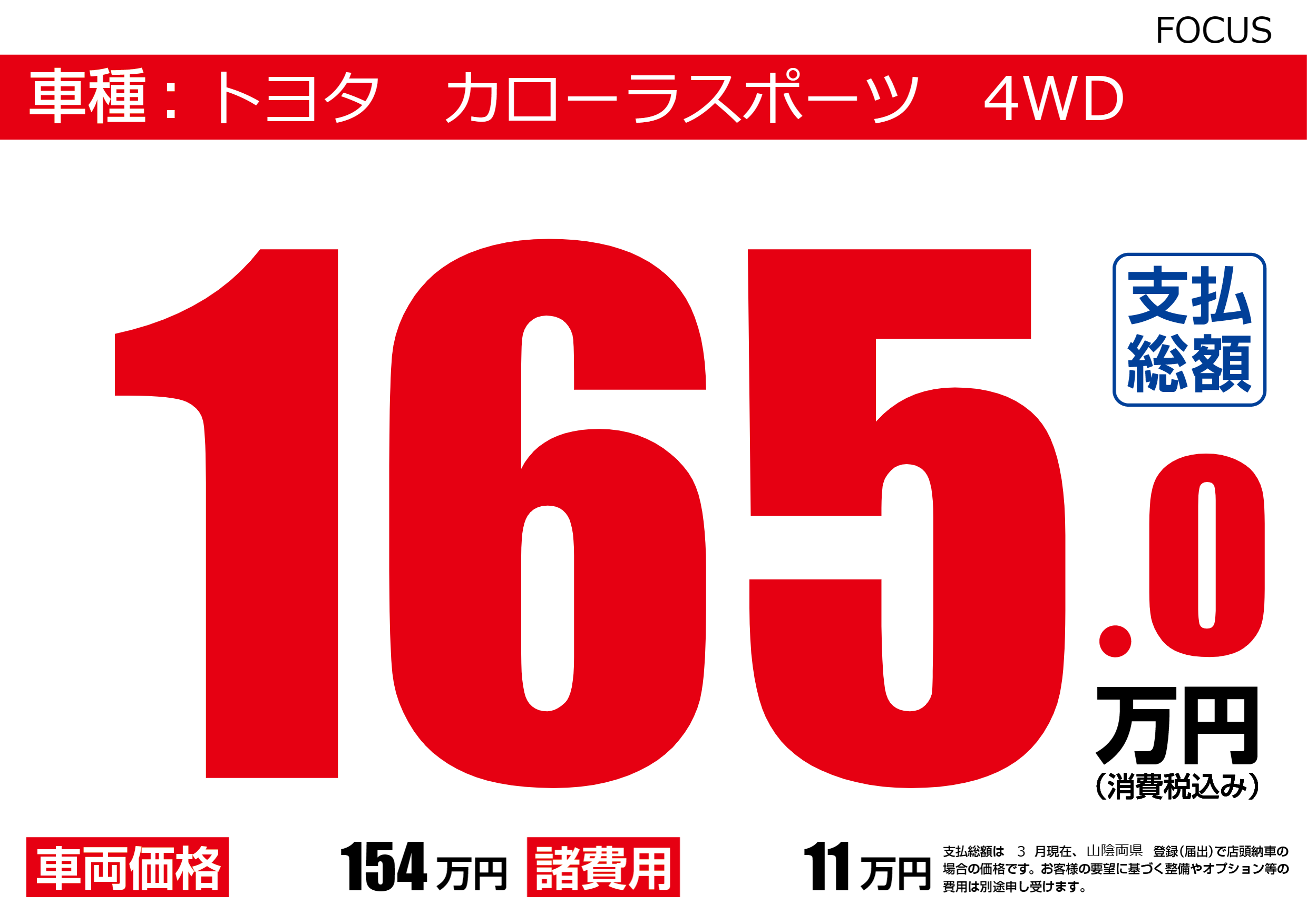 | 車名 | トヨタ カローラスポーツ 4WD | グレード ミッション 排気量 |