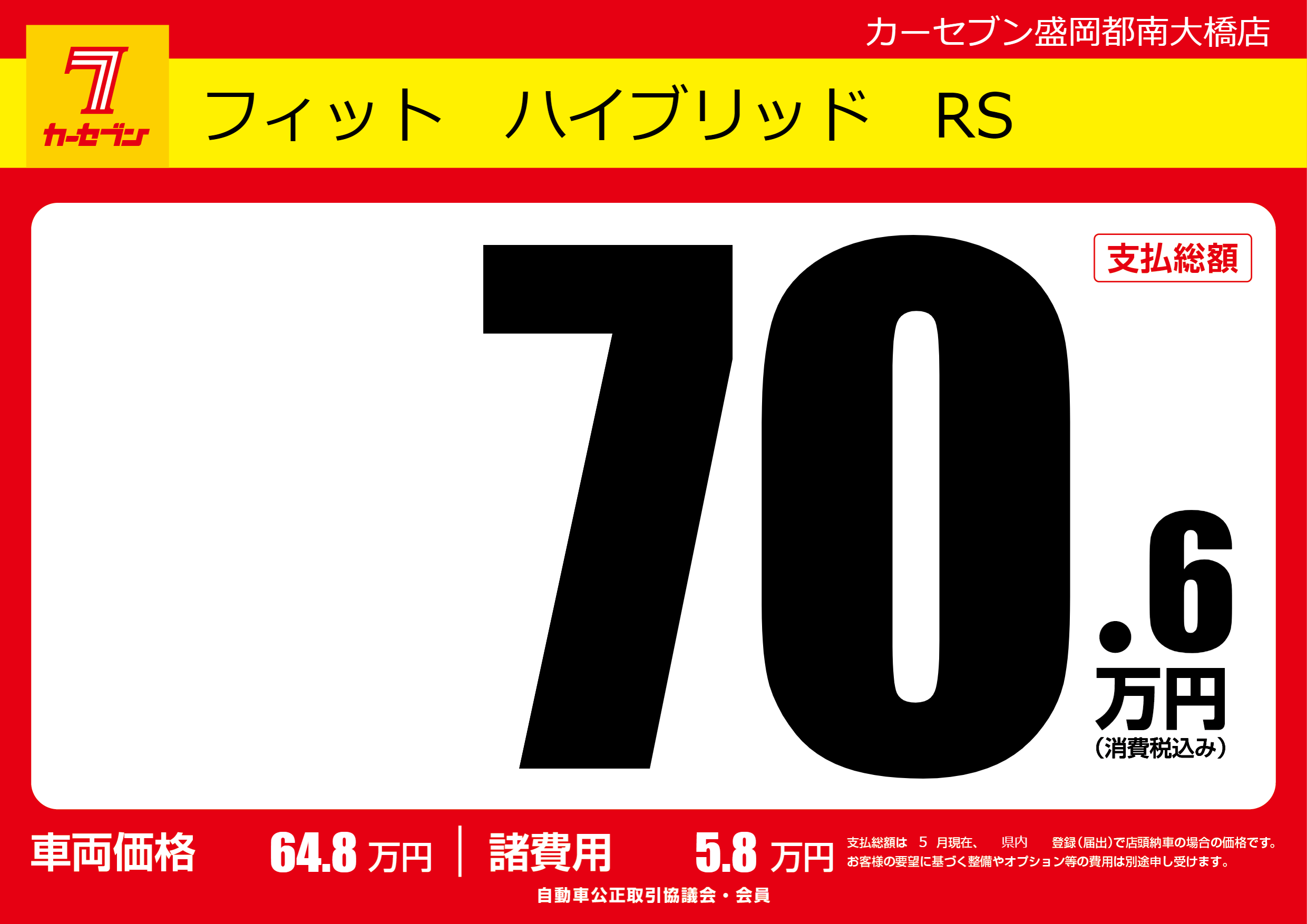 | 車名 | フィット ハイブリッド RS | グレード ミッション 排気量 |