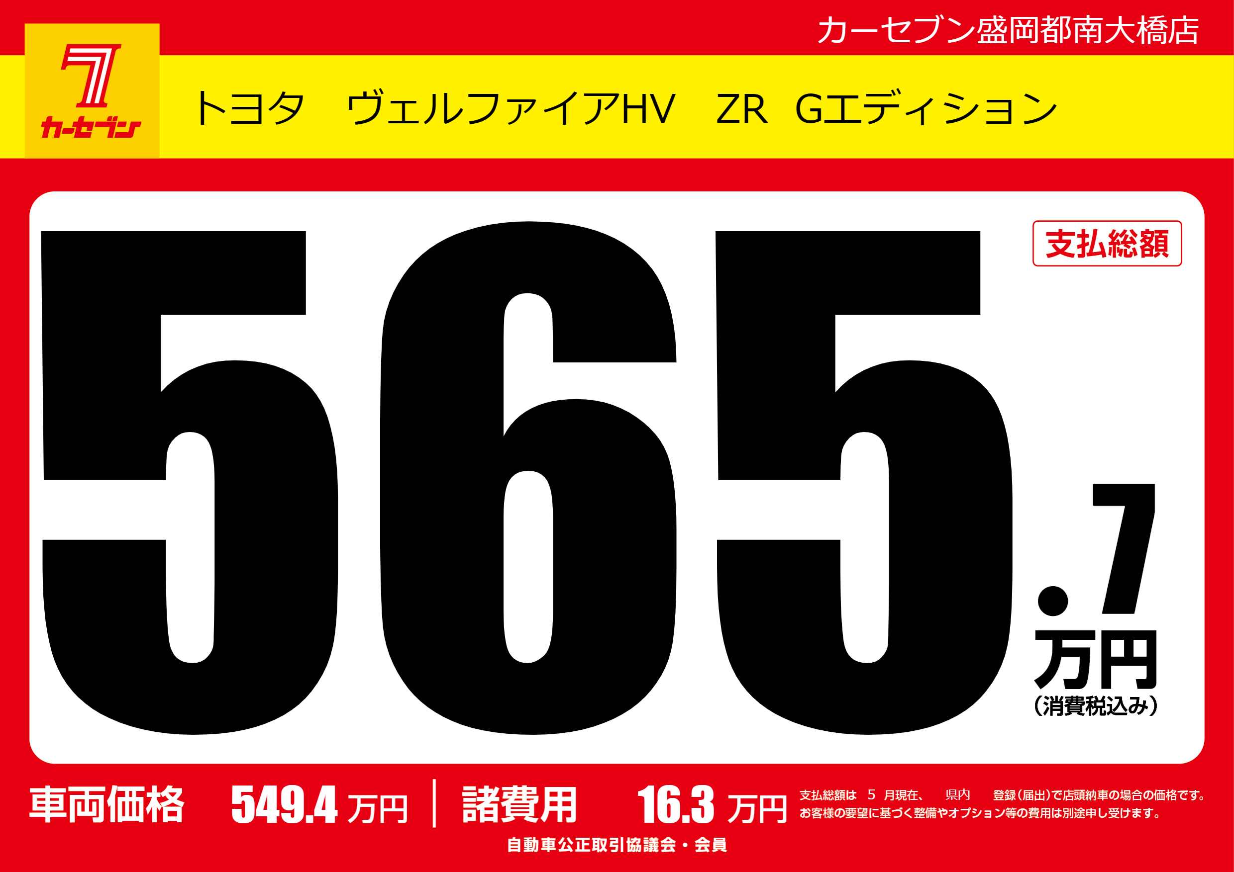 | 車名 | トヨタ ヴェルファイアHV ZR Gエディション | グレード ミッション 排気量 |