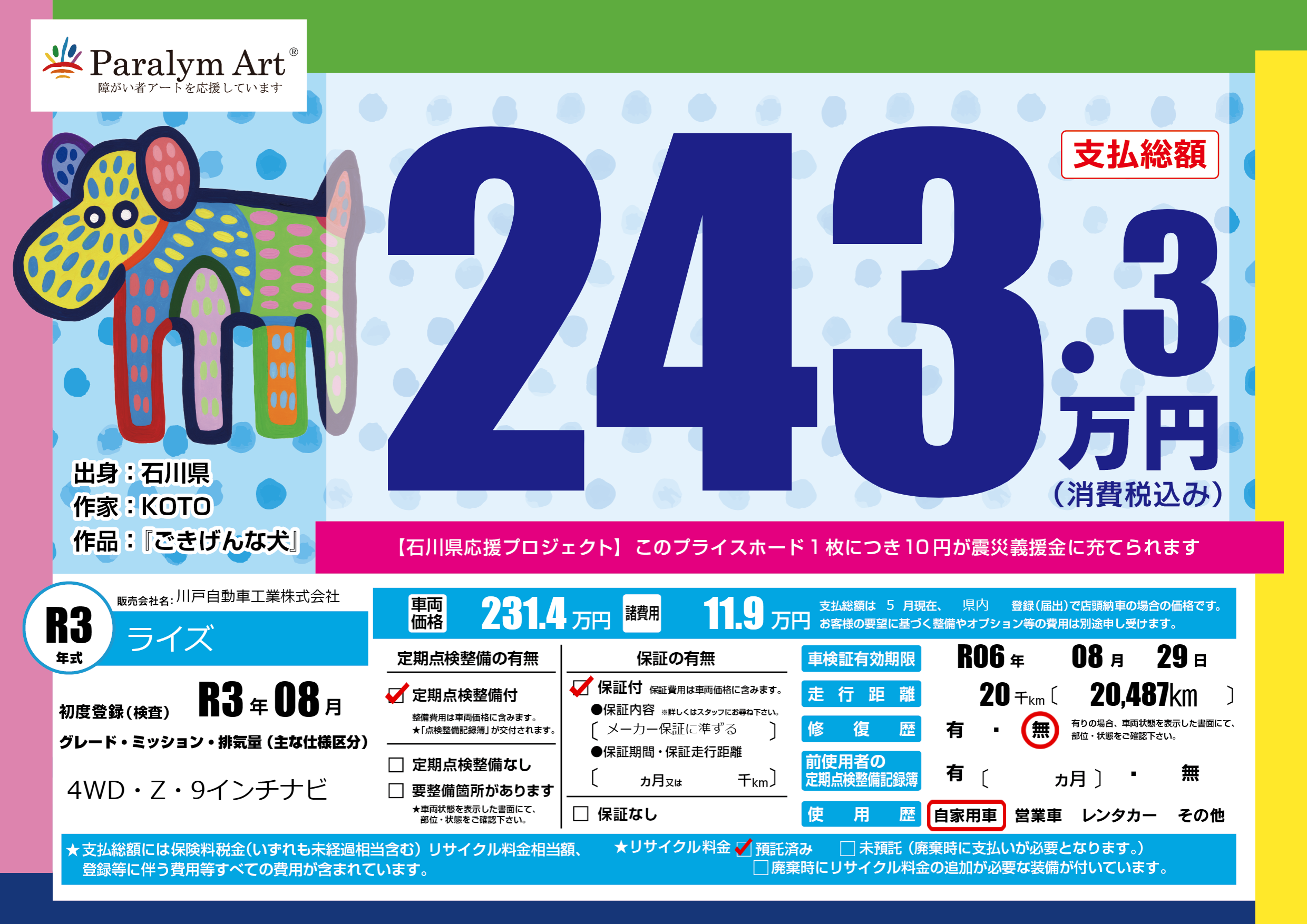 | 走行キロ | 2万km | 初年度登録 | R3年08月 |