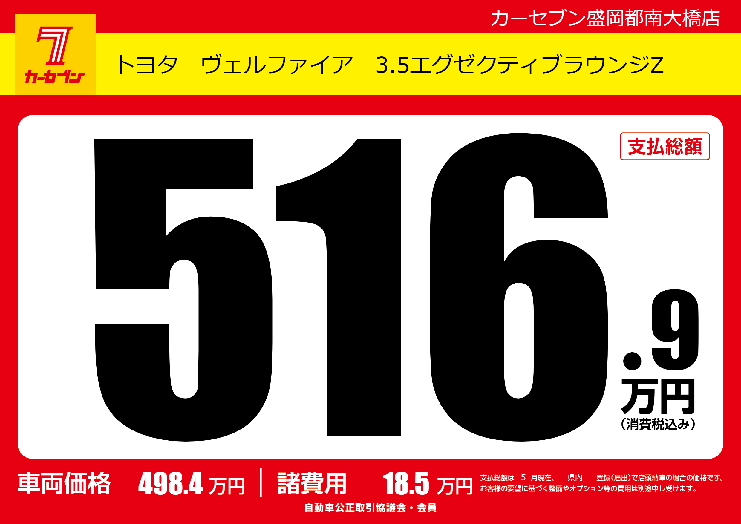 | 車名 | トヨタ ヴェルファイア 3.5エグゼクティブラウンジZ | グレード ミッション 排気量 |