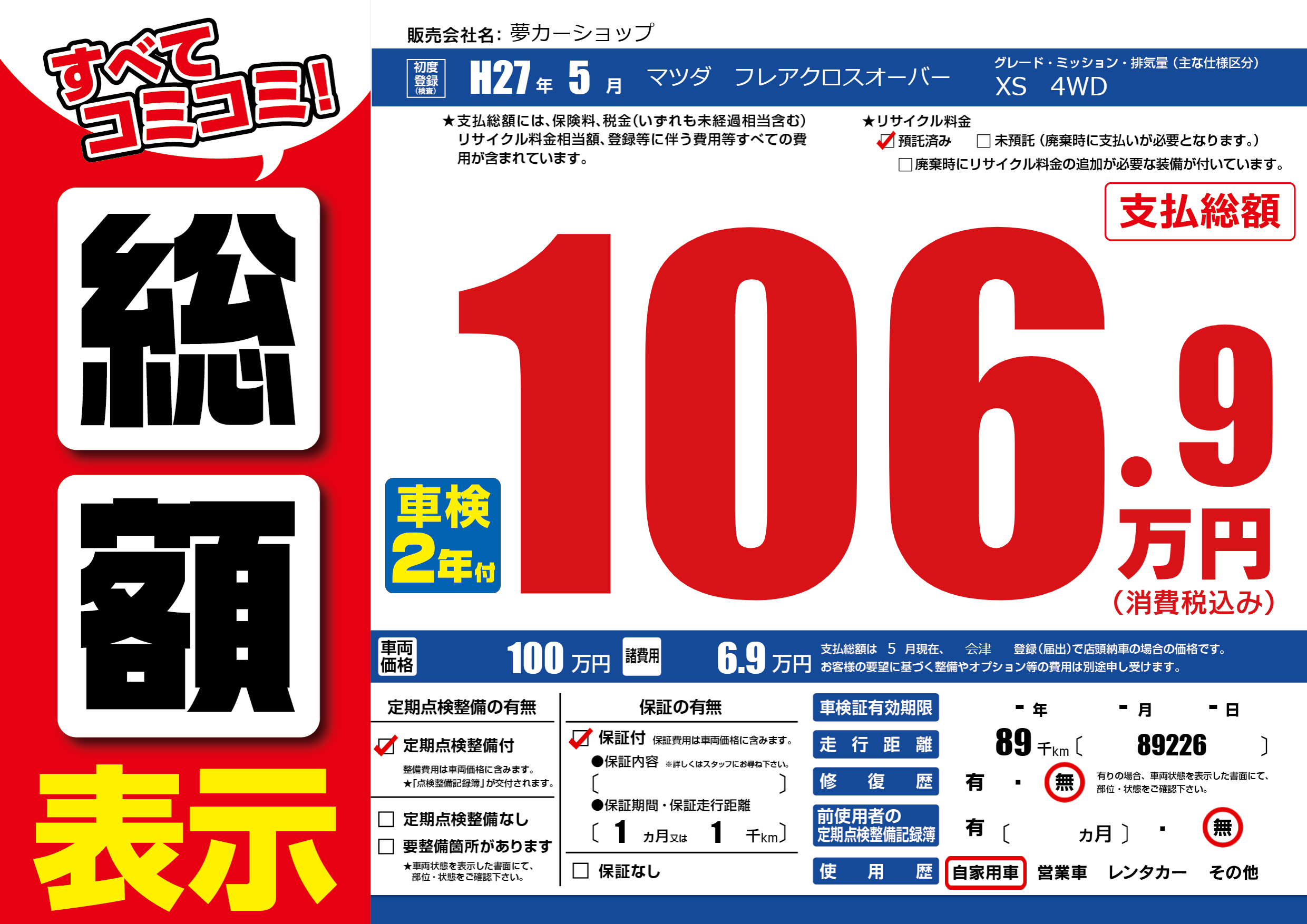 | 走行キロ | 8.9万km | ||