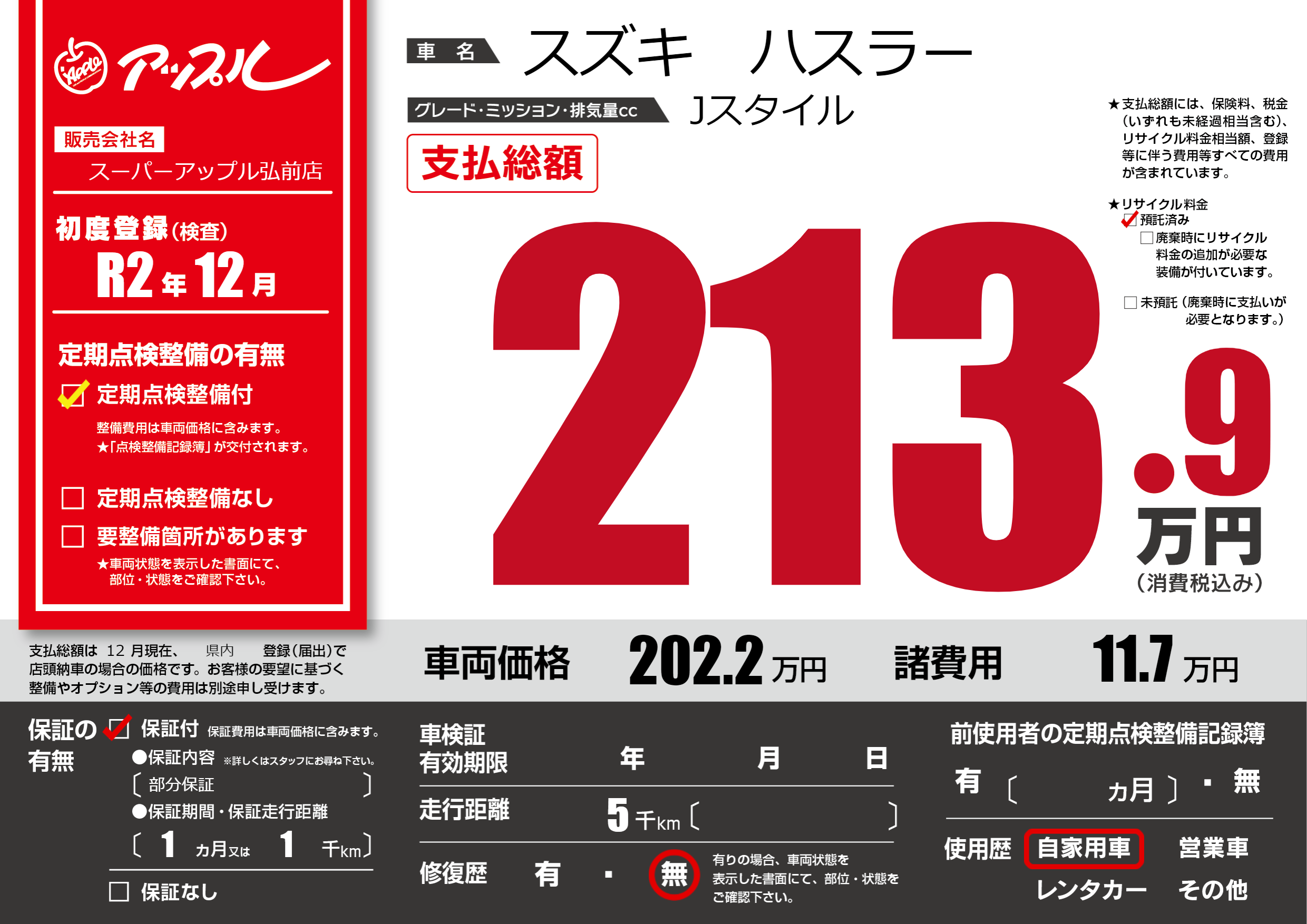 | 初年度登録 | R2年12月 | ||