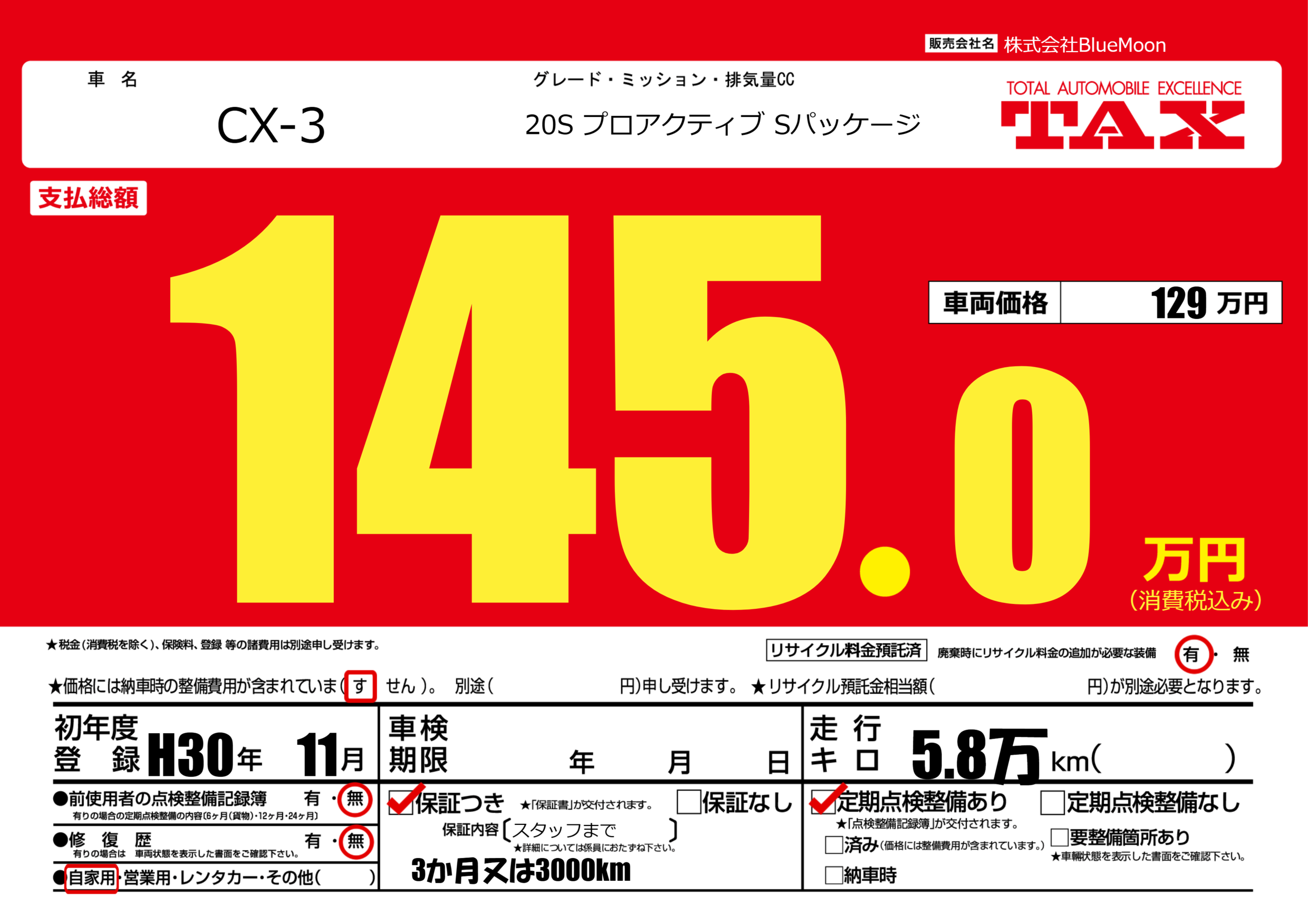 | 車名 | CX-3 | グレード ミッション 排気量 |