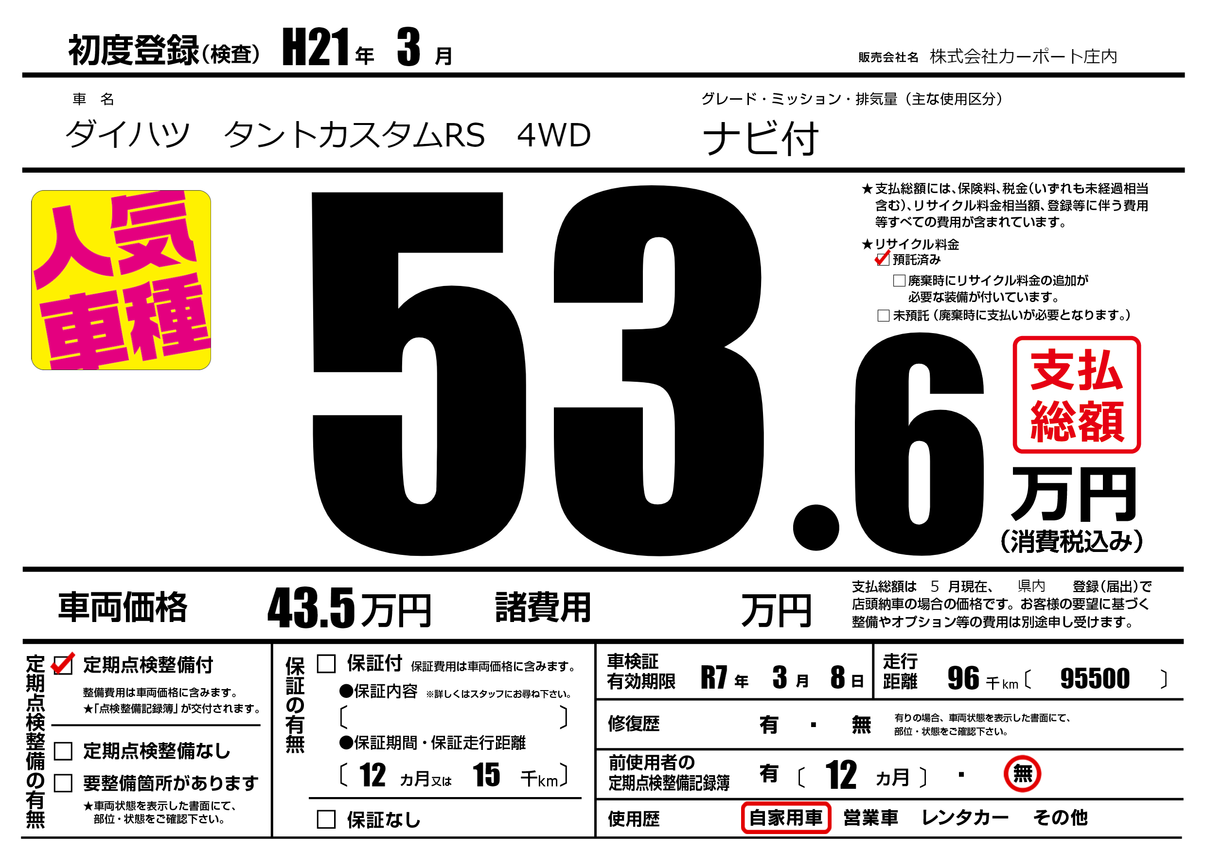 | 定期点検整備 | 定期点検整備あり | ||