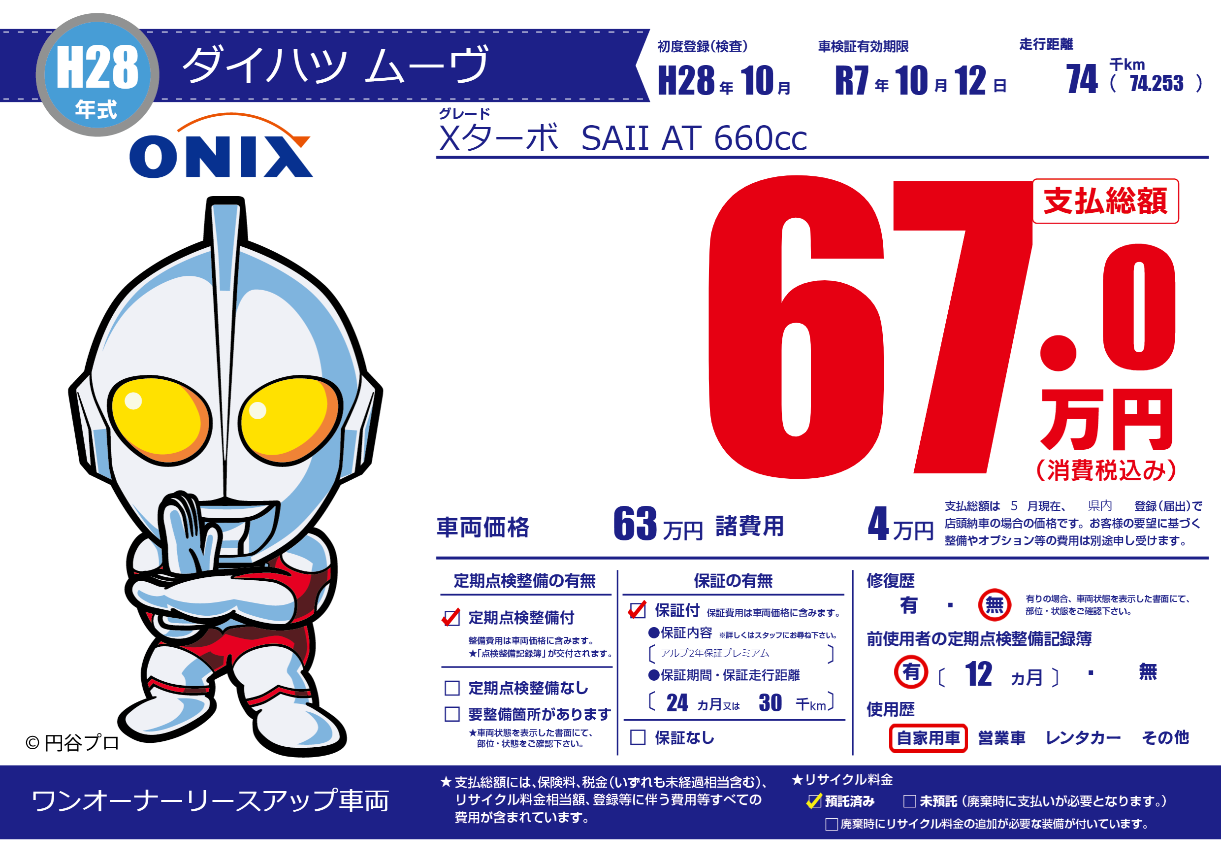 | 車検制限 | R7年 10月 12日 | ||