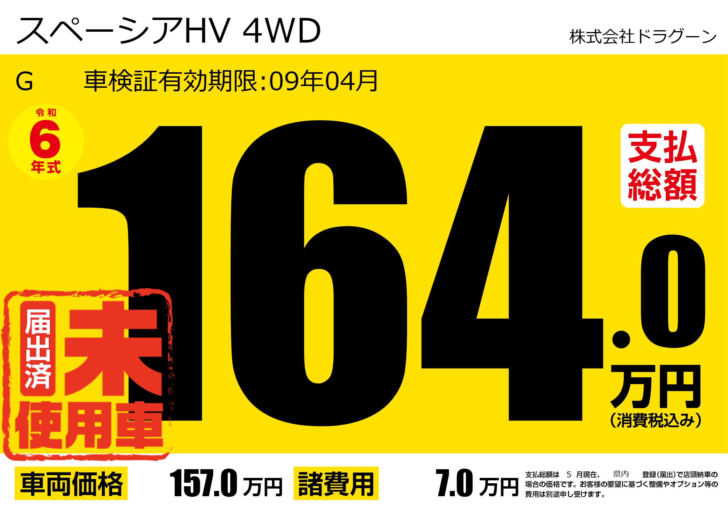 | 車名 | スペーシアHV 4WD | グレード ミッション 排気量 |