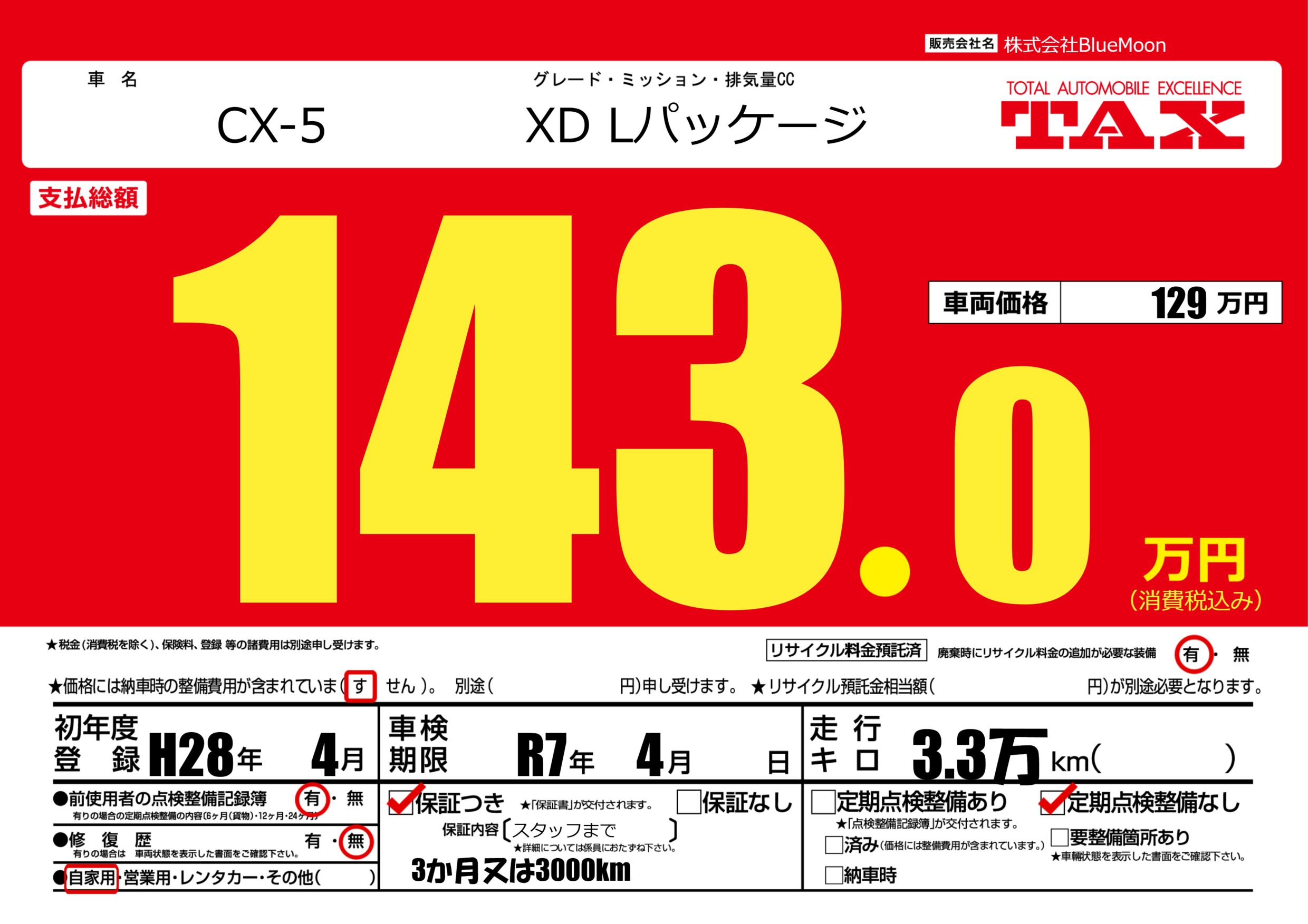 | 車名 | CX-5 | グレード ミッション 排気量 |