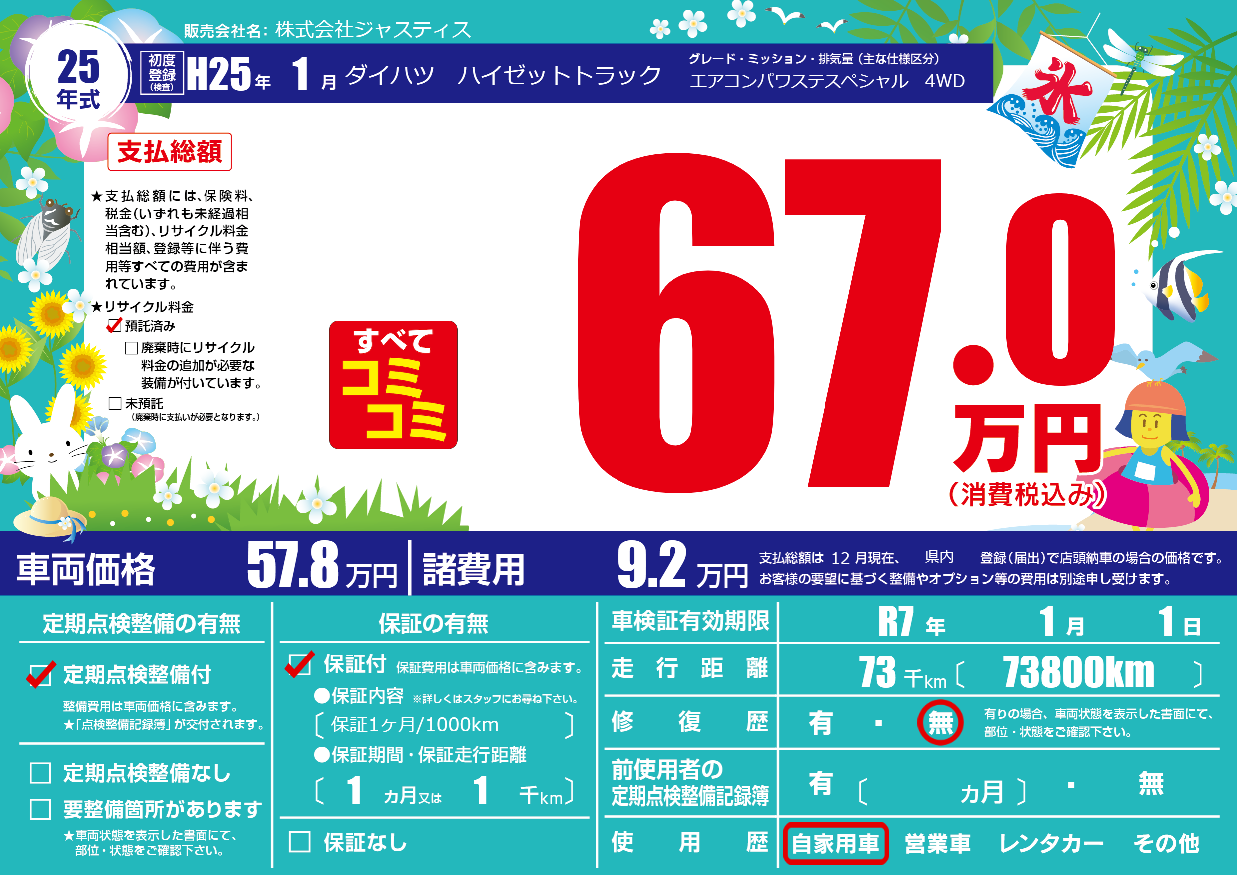 | 走行キロ | 7.3万km | 初年度登録 | H25年1月 |