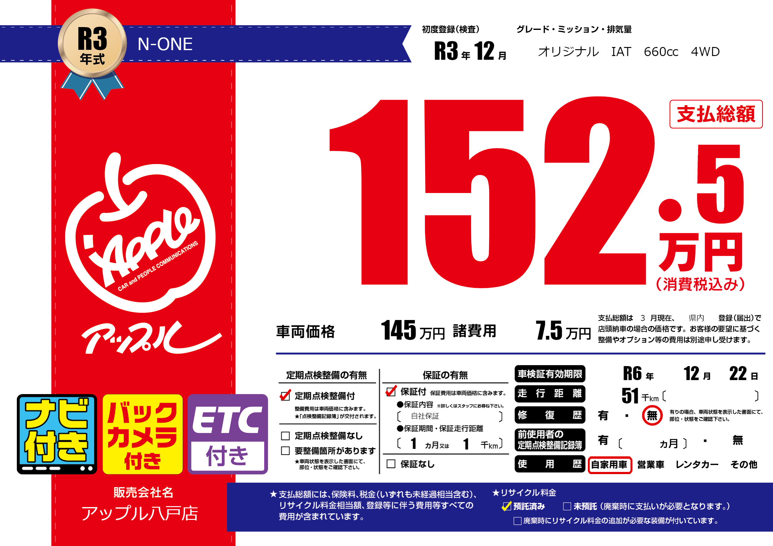 | 車名 | N-ONE | グレード ミッション 排気量 |