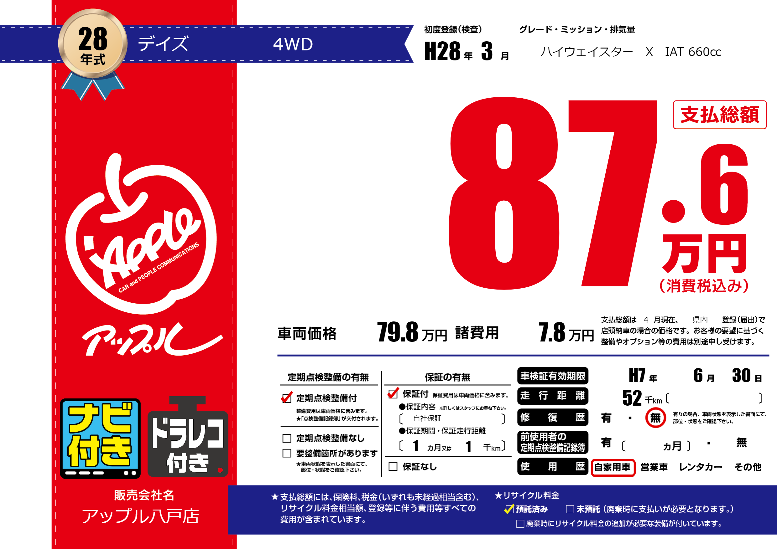 なし | 車検制限 | H7年6月30月 |