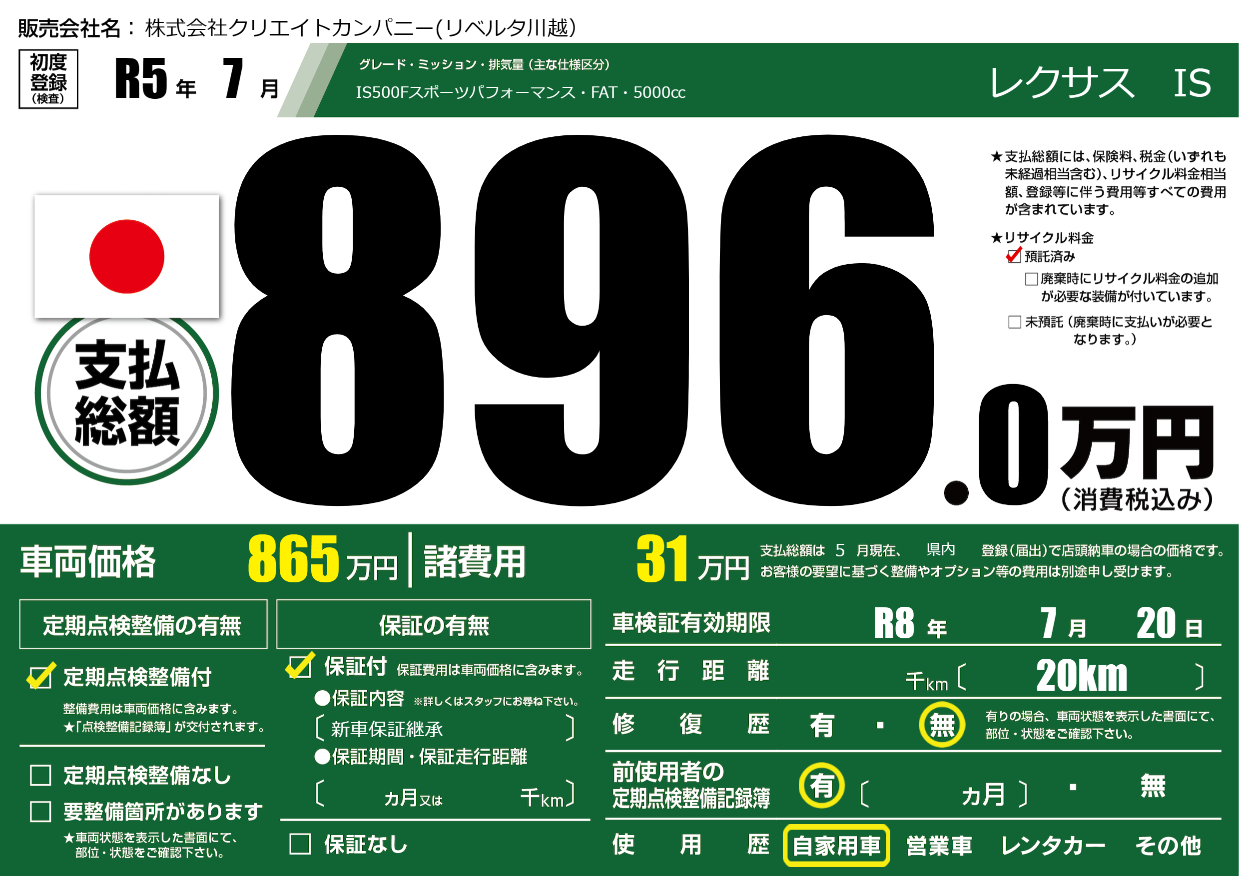 IS500Fスポーツパフォーマンス・FAT・5000㏄ |