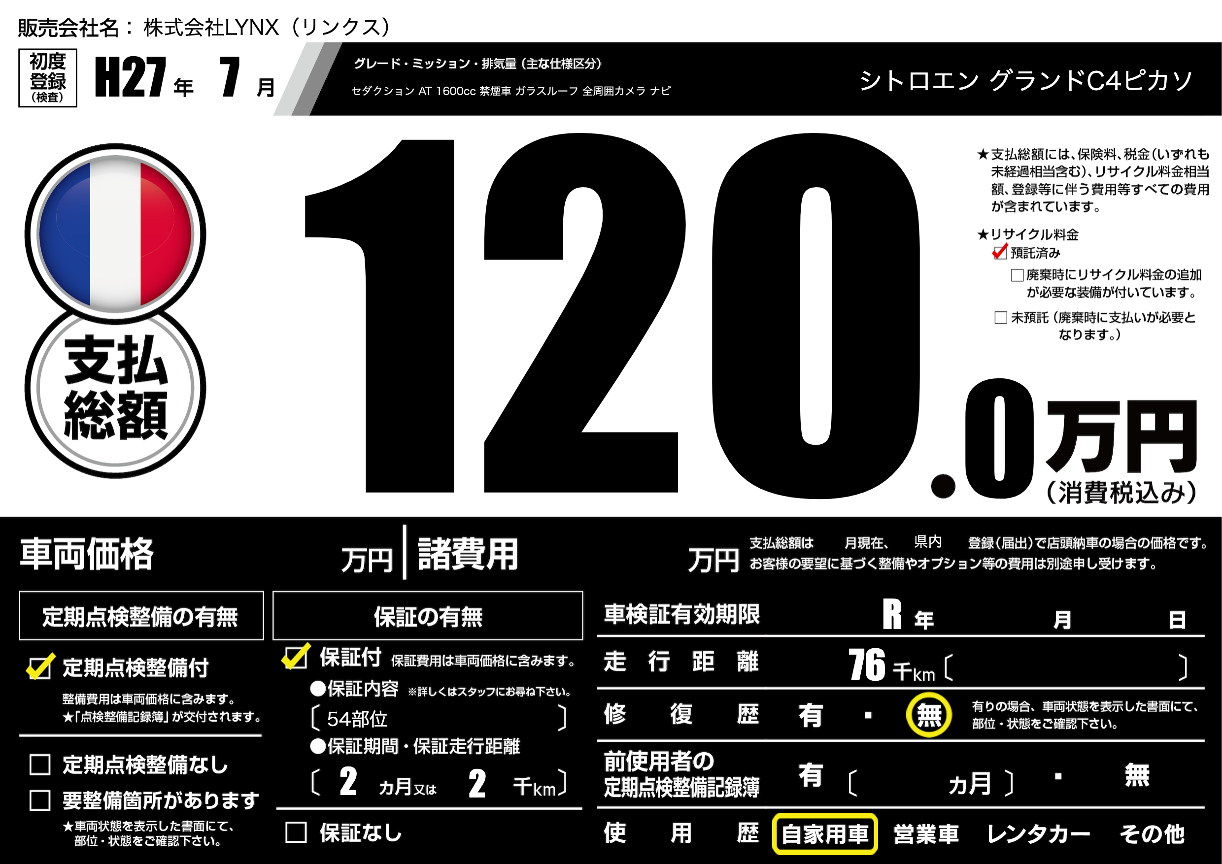 なし | 車検制限 | R年---月---月 |