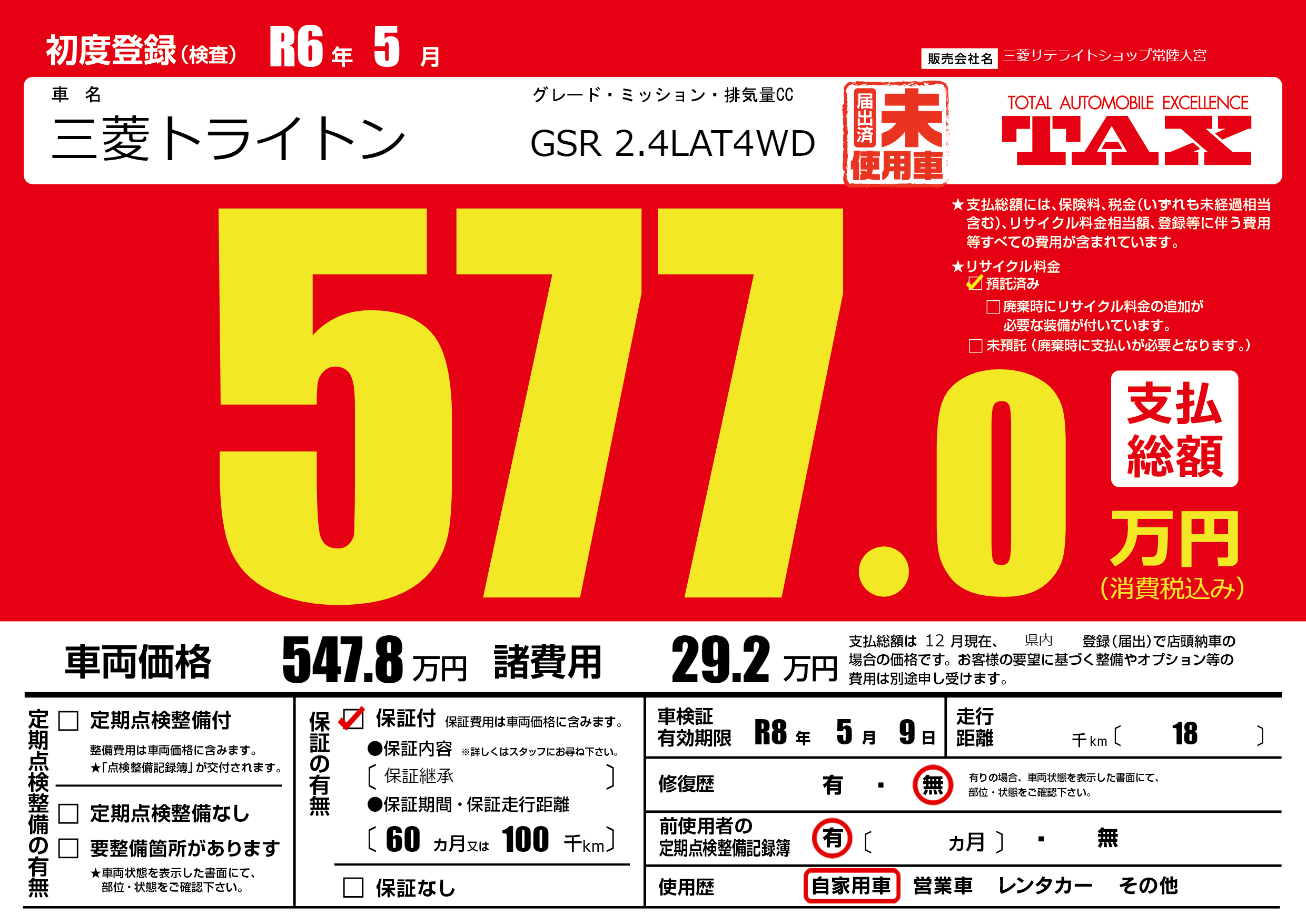 | 車名 | 三菱トライトン | グレード ミッション 排気量 |