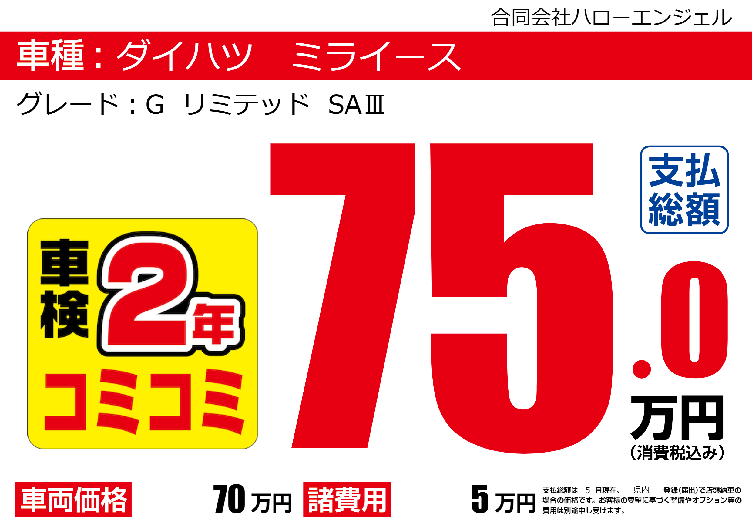 | 車名 | ダイハツ ミライース | グレード ミッション 排気量 |