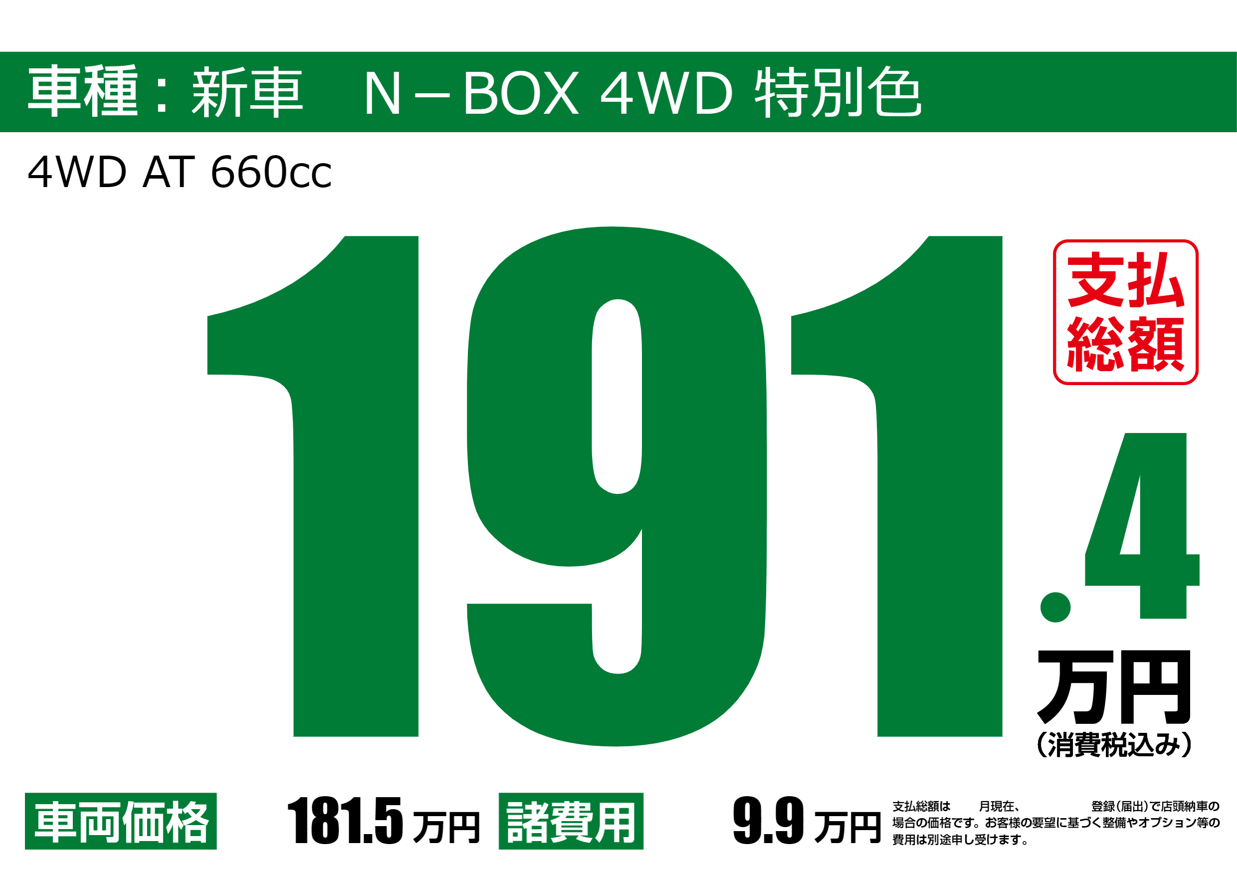 | 車名 | 新車 N-BOX 4WD 特別色 | グレード ミッション 排気量 |