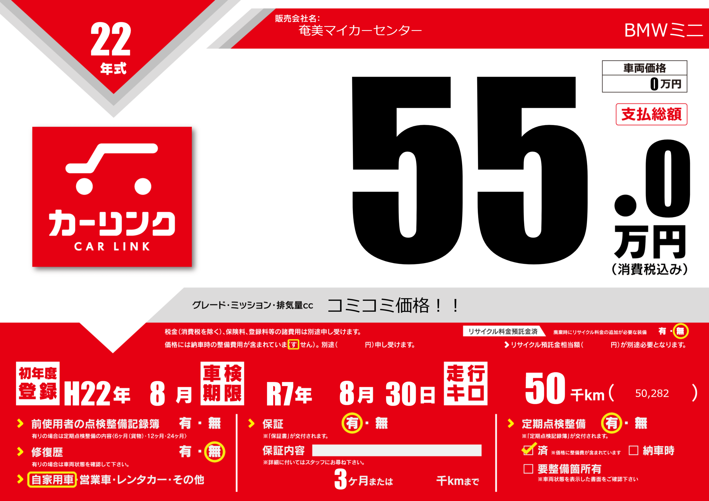 | 定期点検整備 | 定期点検整備あり 定期点検整備済み | ||